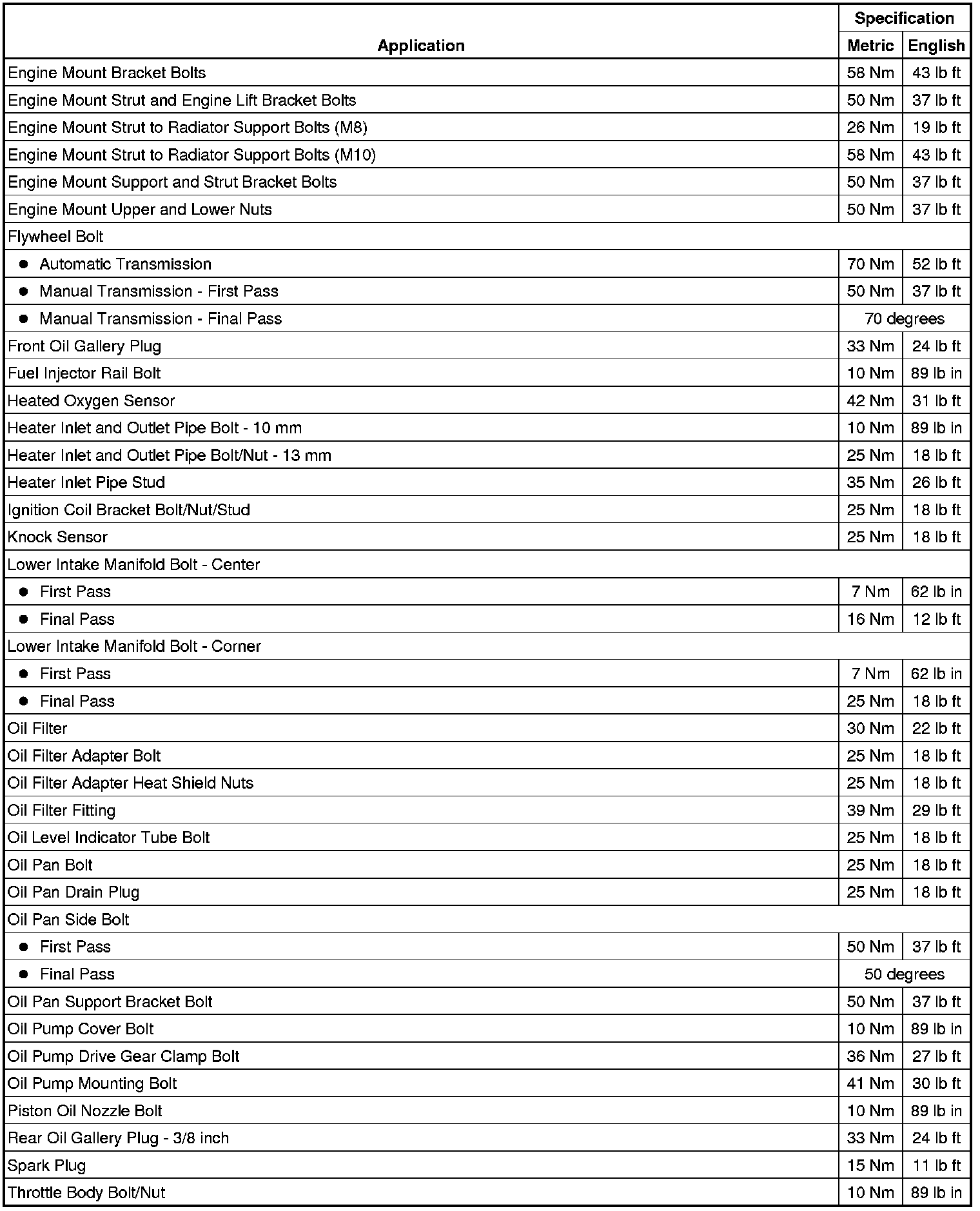 Fastener Tightening Specifications