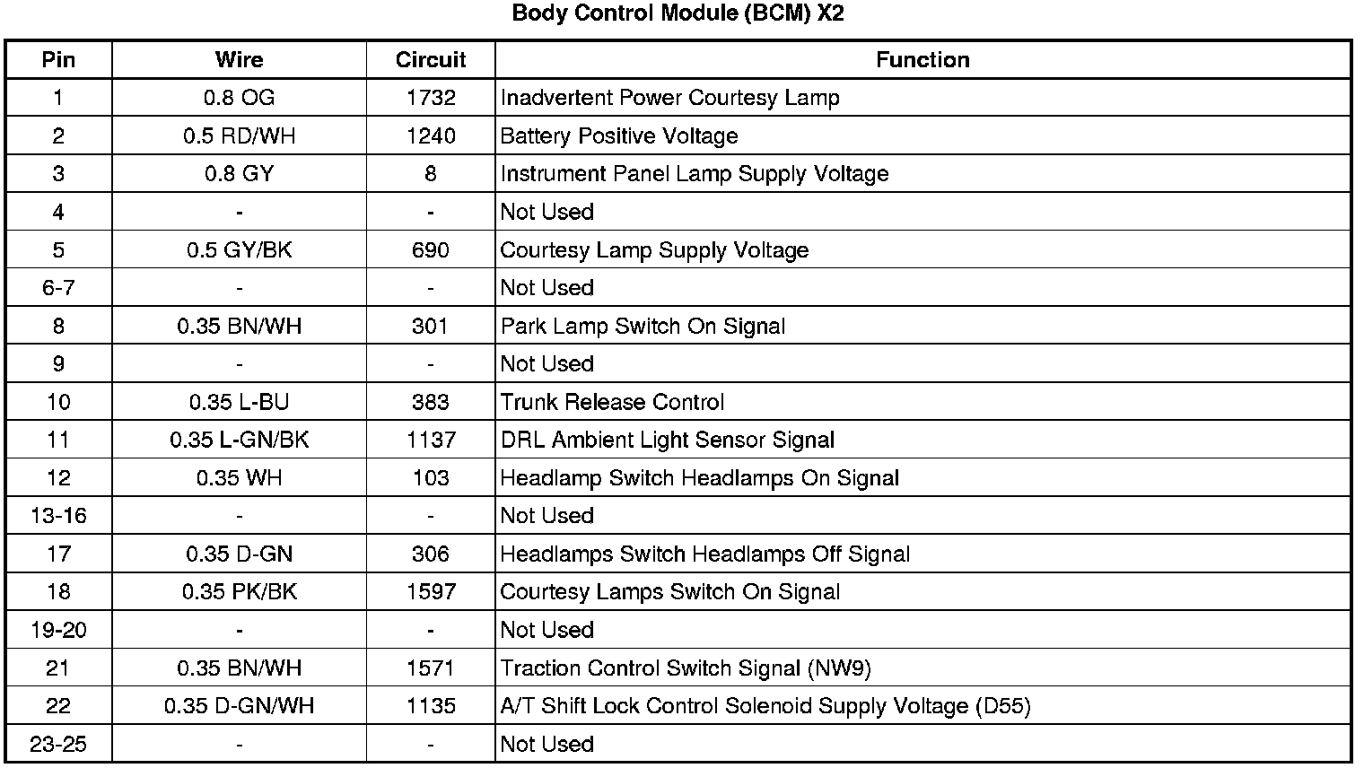 Home >> Chevrolet >> 2011 >> Impala V6-3.9L >> Repair and Diagnosis >> Diagrams >> Connector Views >> Body Control Module