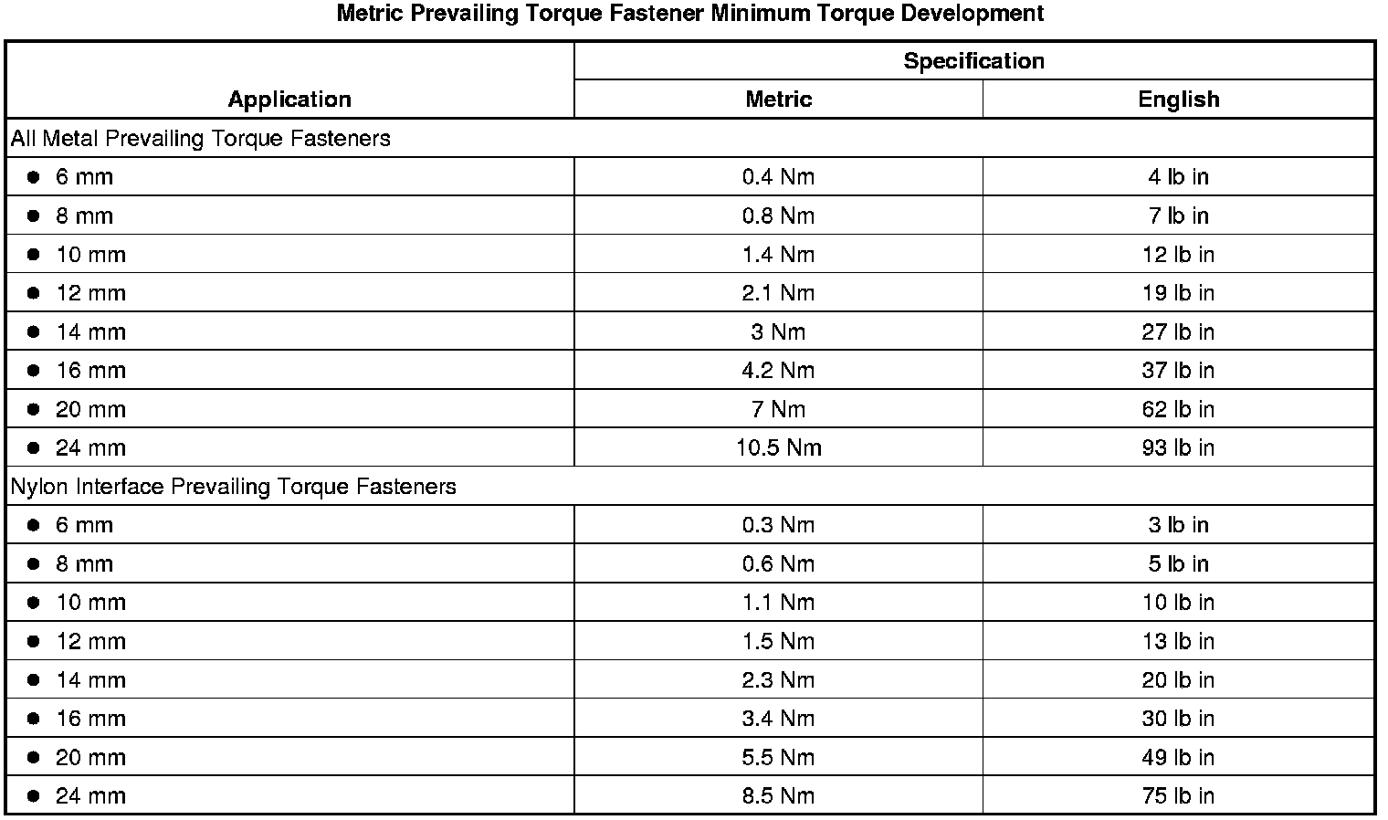 The metric fasteners on GM products are designed to new, international standards. The following are the common sizes and pitches, except for special applications: