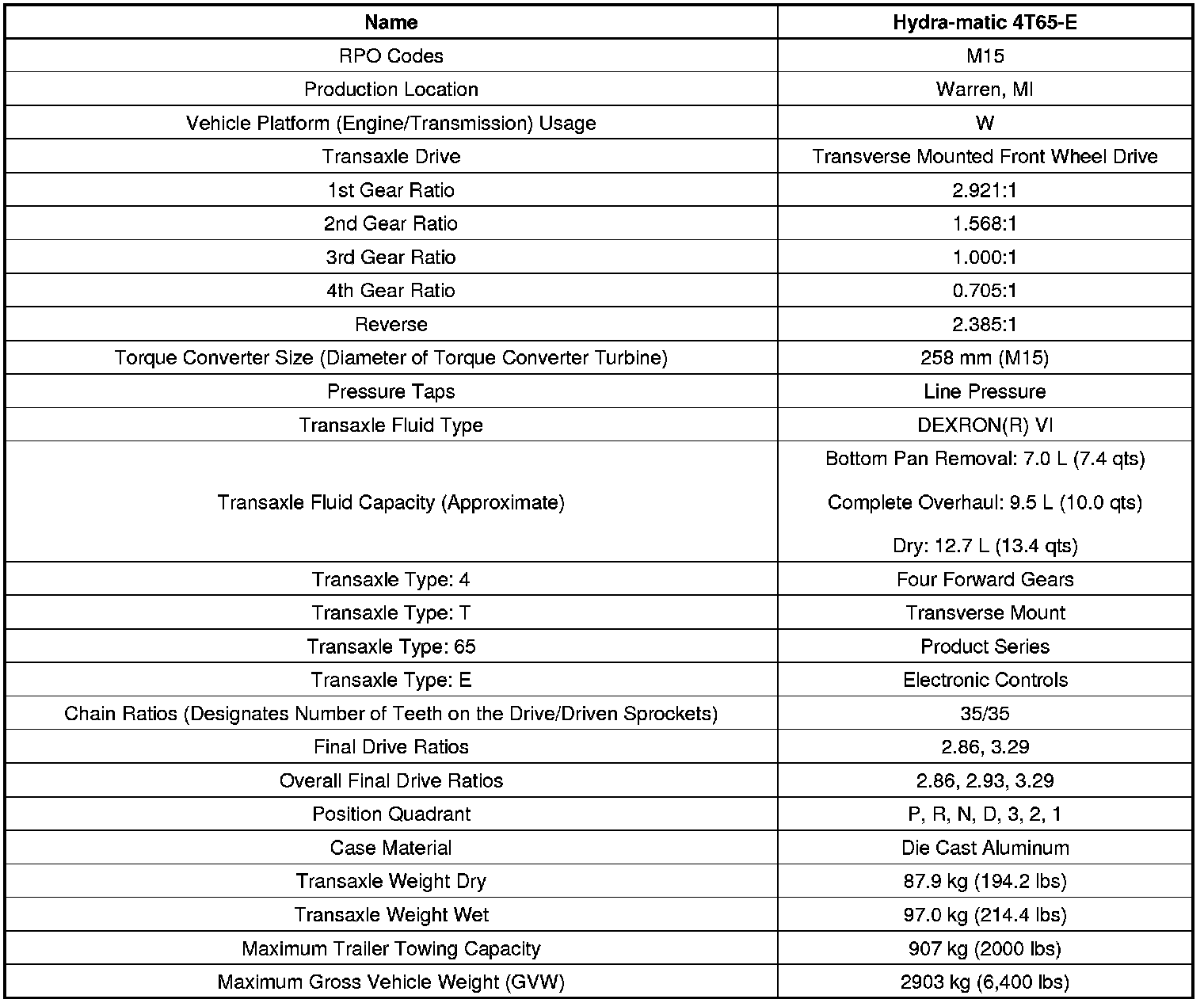 Transmission General Specifications