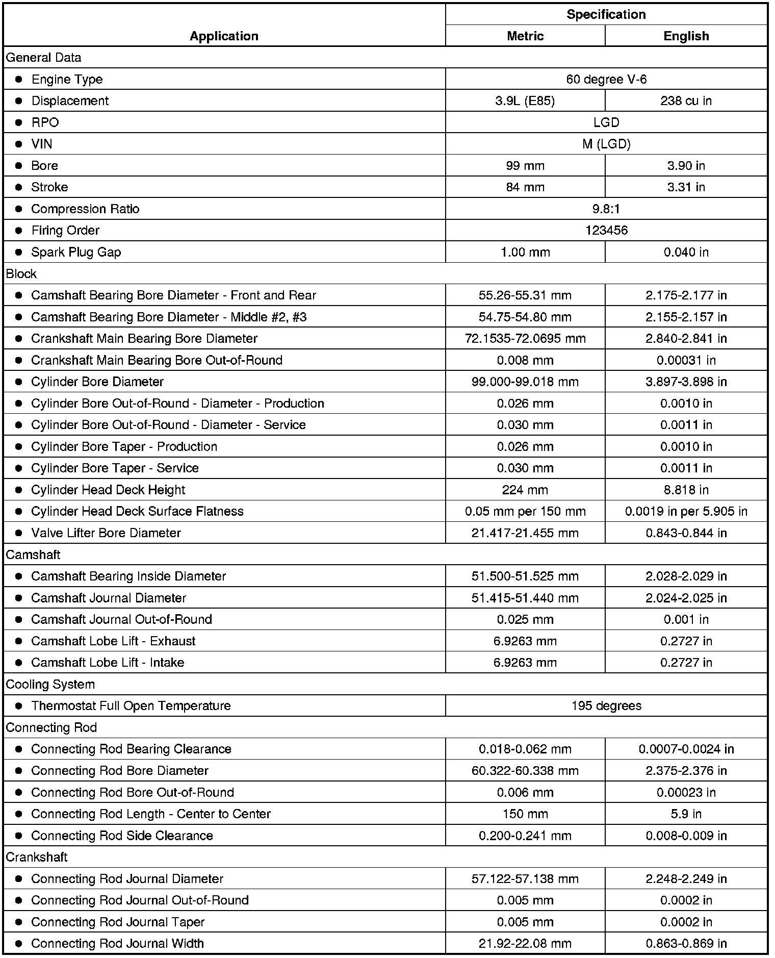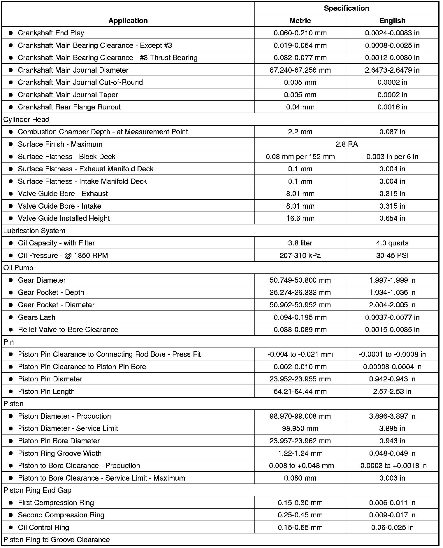 Engine Mechanical Specifications
