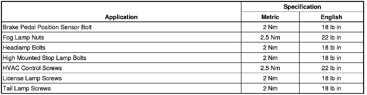 Fastener Tightening Specifications