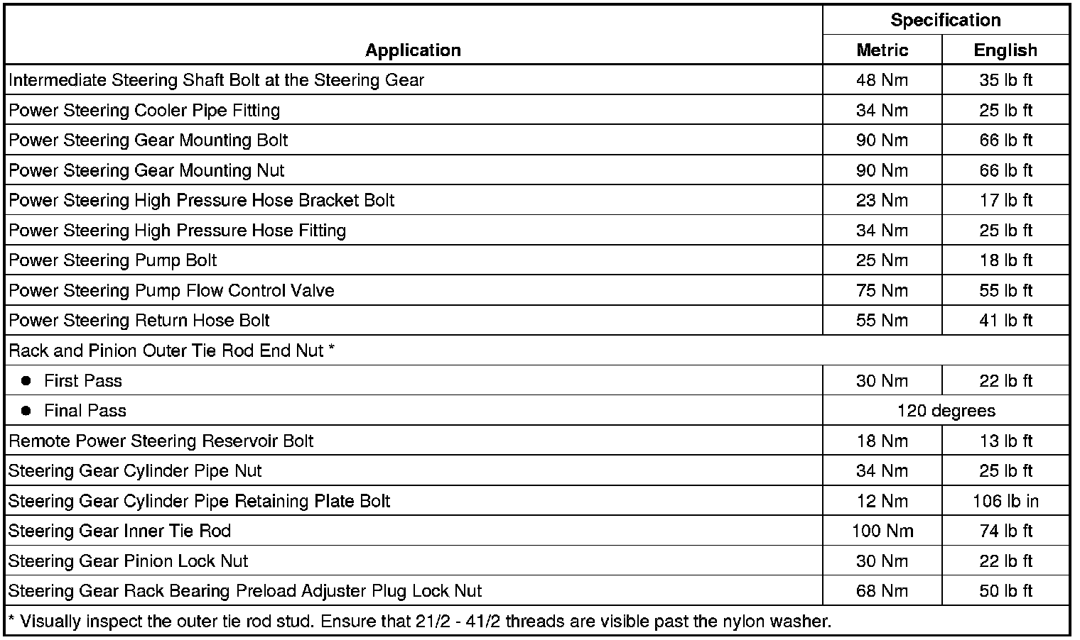 Fastener Tightening Specifications