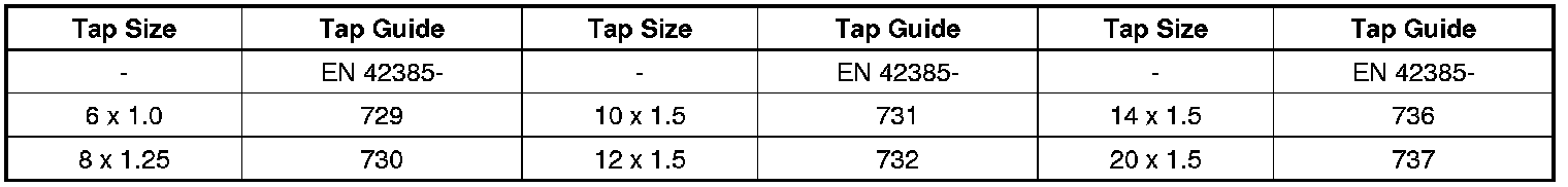 The cylinder head bolt hole thread repair tooling are in the kits EN 42385-2000 - insert kit and EN 42385-700 - kit. The cylinder head bolt hole thread repair components consist of the following: