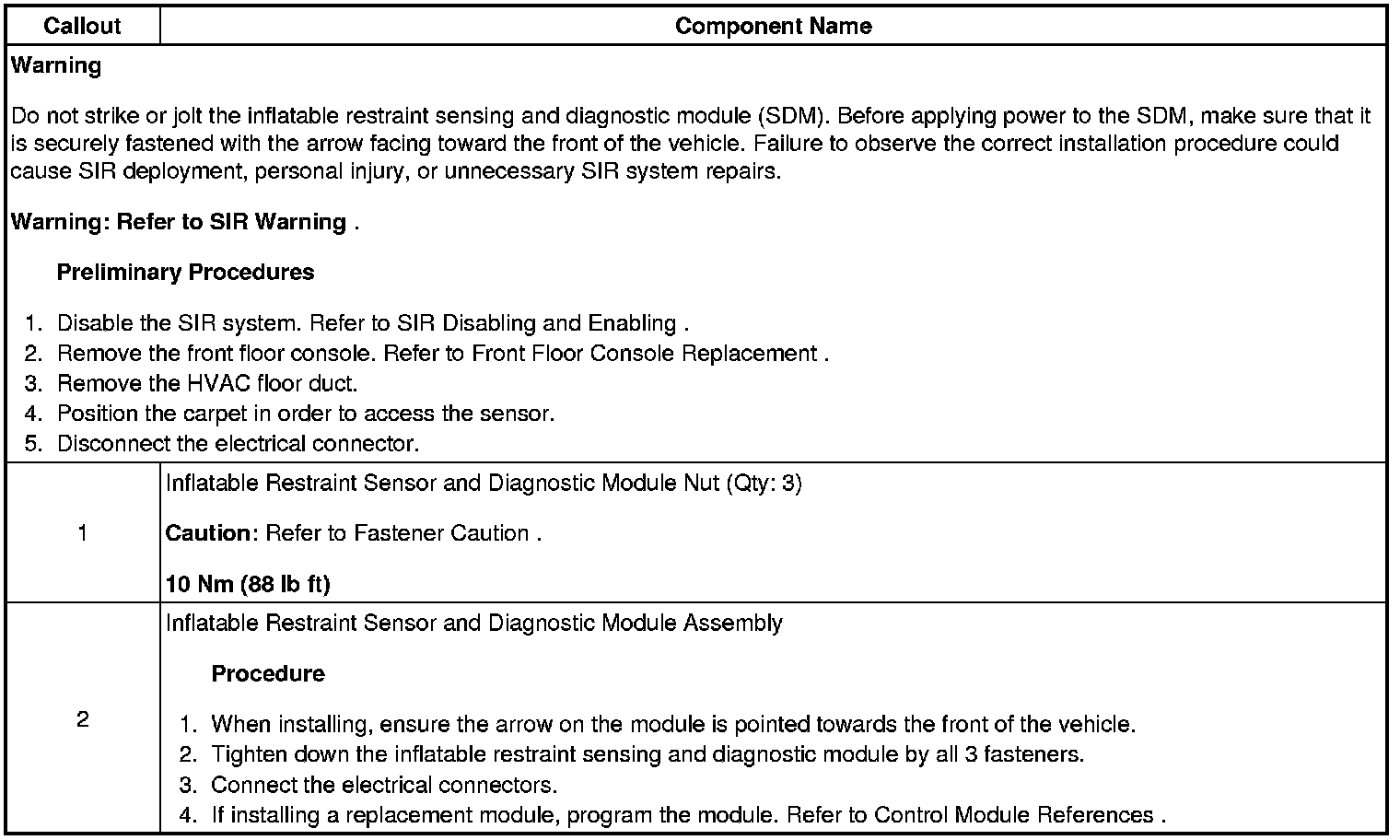 Inflatable Restraint Sensing and Diagnostic Module Replacement