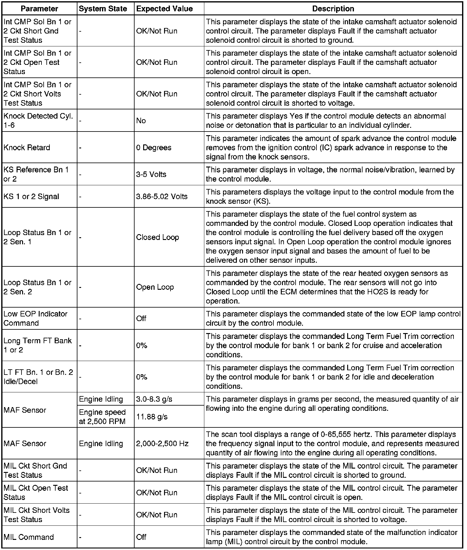 The Engine Control Module Scan Tool Data List contains all engine-related parameters that are available on the scan tool. The list is arranged in alphabetical order. A given parameter may appear in any one of the data lists, and in some cases may appear more than once, or in more than one data list in order to group certain related parameters together.