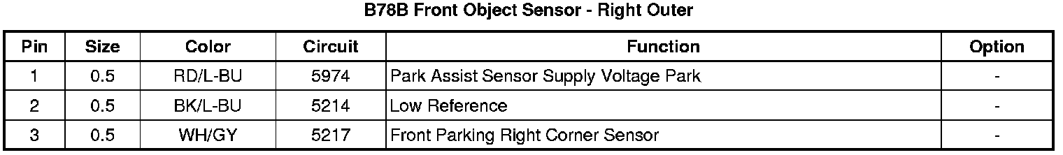 B78B Front Object Sensor - Right Outer