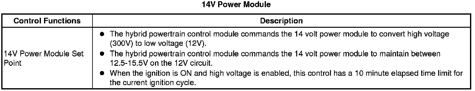 The accessory DC power control module is also referred to as the 14 volt power module. The Accessory DC Power Control Module Scan Tool Data Parameters list contains hybrid controls-related parameters. The list is arranged in alphabetical order.