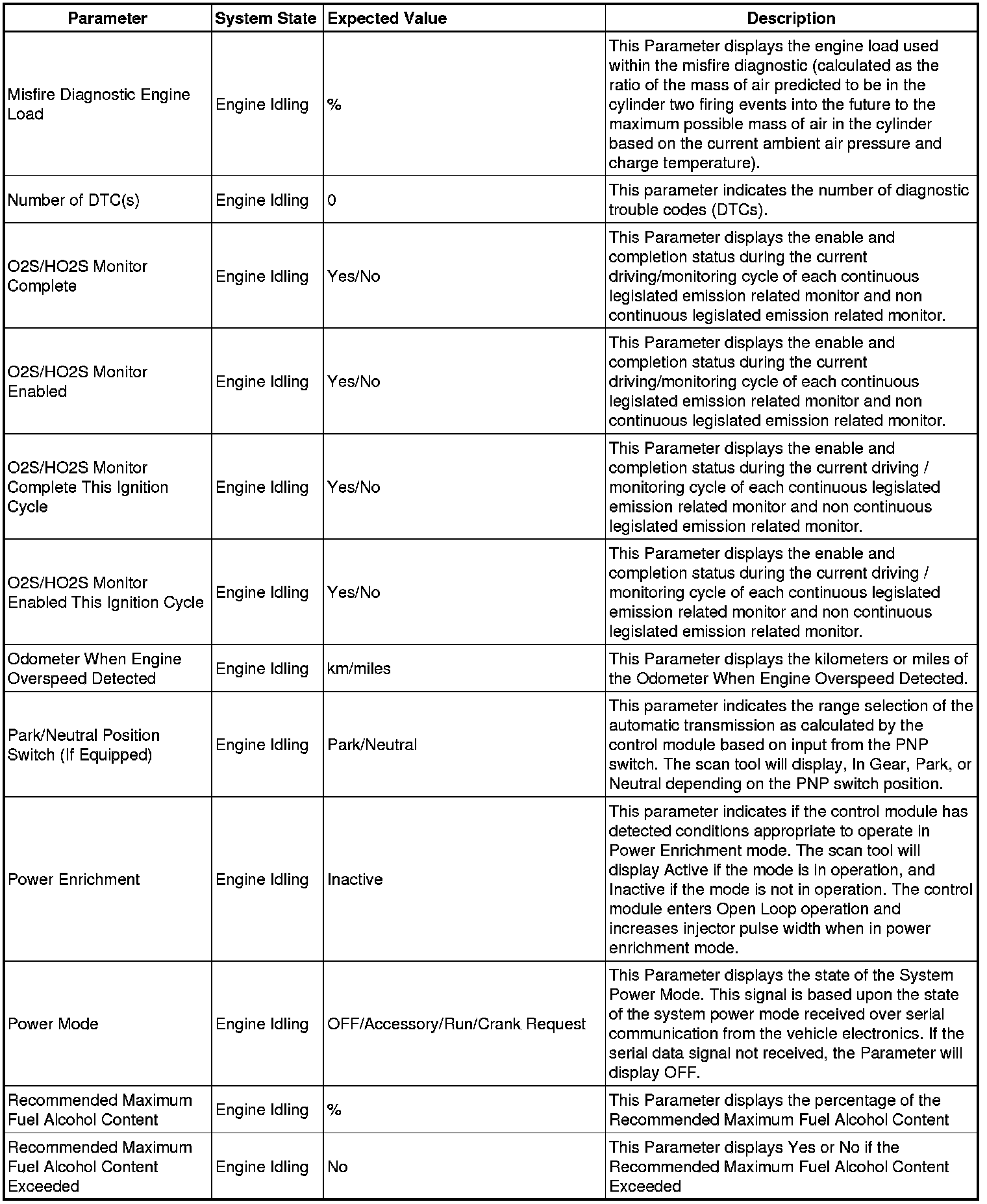 The Engine Control Module Scan Tool Data List contains all engine-related parameters that are available on the scan tool. The list is arranged in alphabetical order. A given parameter may appear in any one of the data lists, and in some cases may appear more than once, or in more than one data list in order to group certain related parameters together.