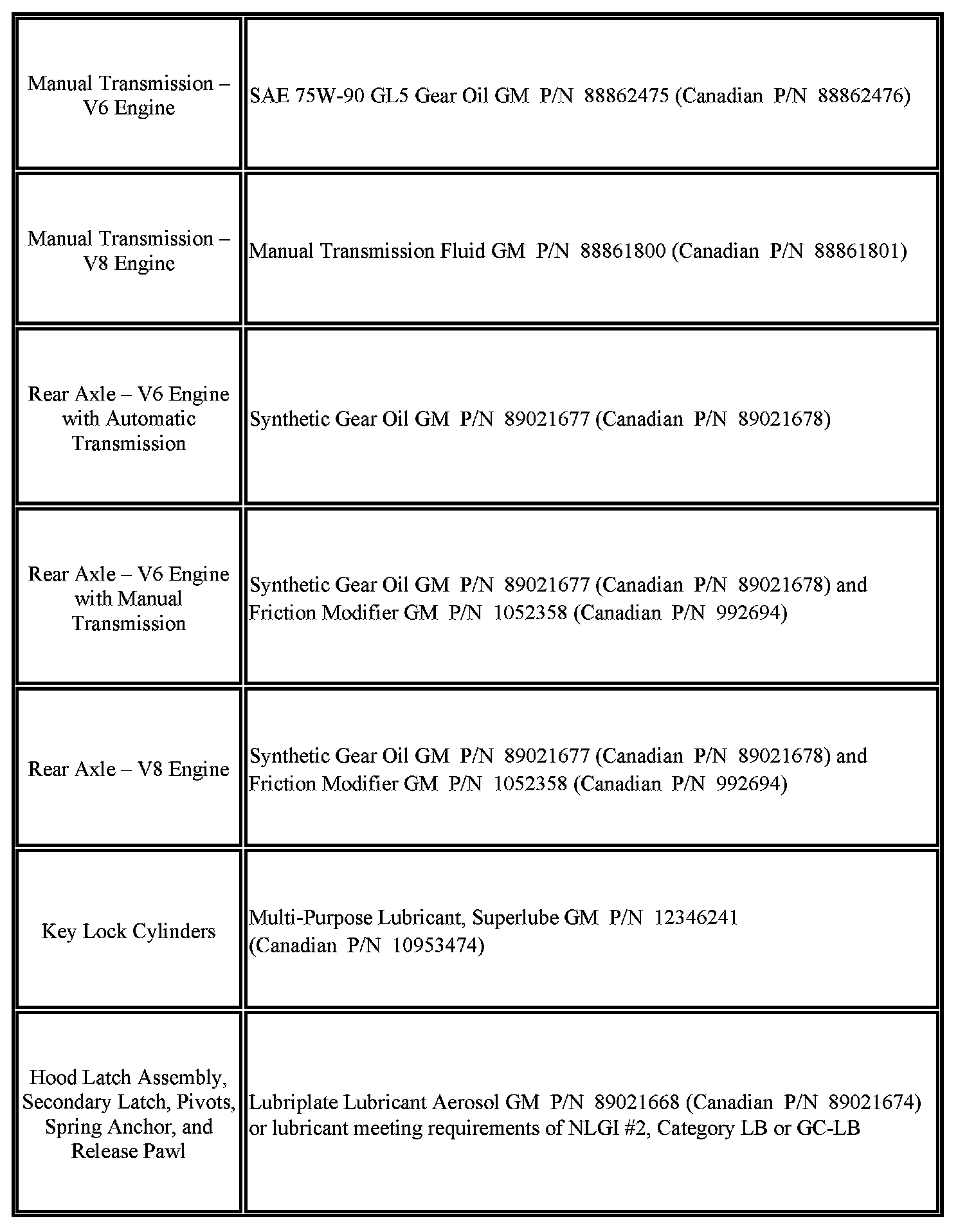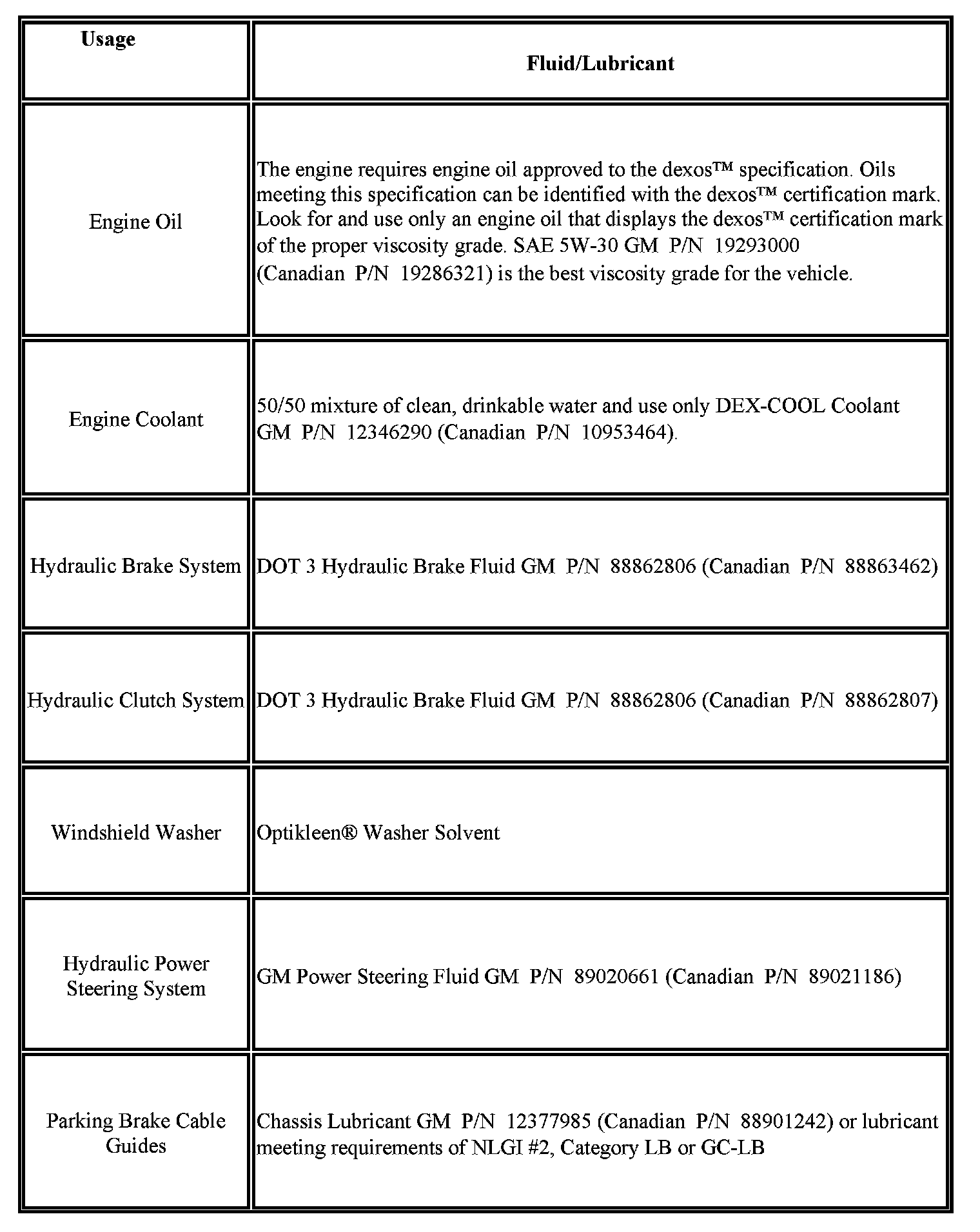 Fluid and Lubricant Recommendations