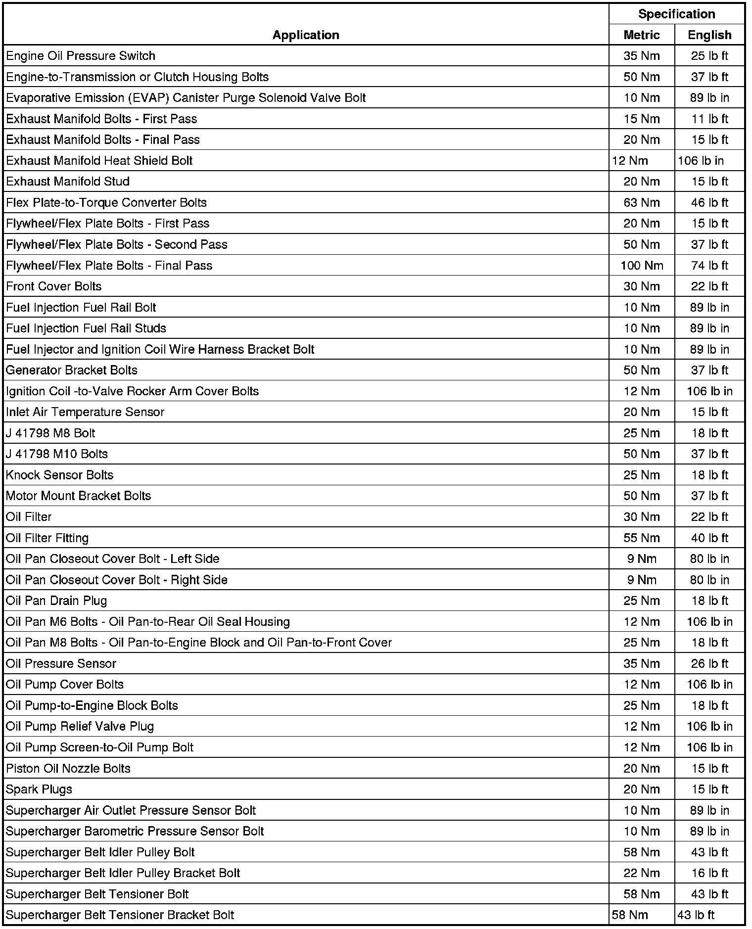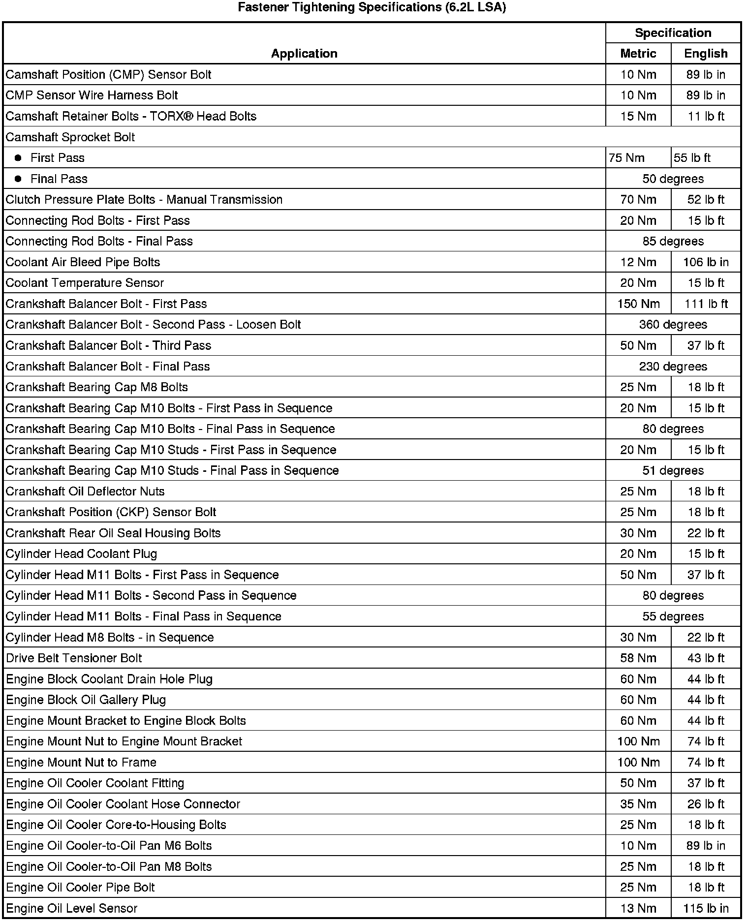 Fastener Tightening Specifications (6.2L LSA)