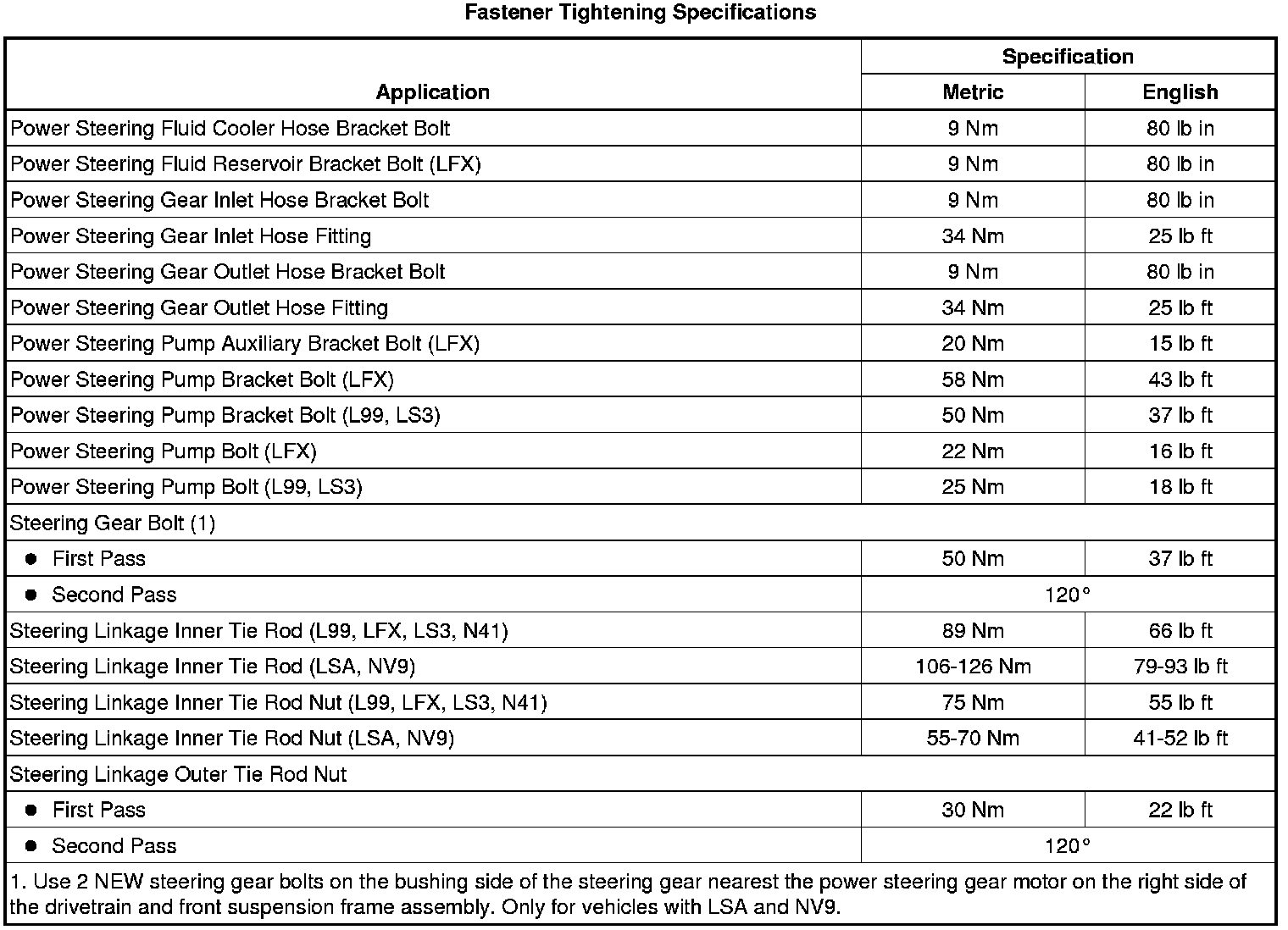 Fastener Tightening Specifications