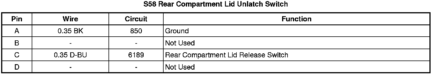 S58 Rear Compartment Lid Unlatch Switch
