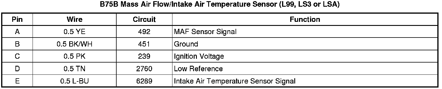 B75B Mass Air Flow/Intake Air Temperature Sensor (L99, LS3 or LSA)