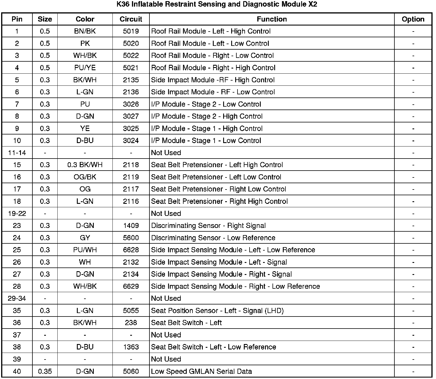 K36 Inflatable Restraint Sensing and Diagnostic Module X2