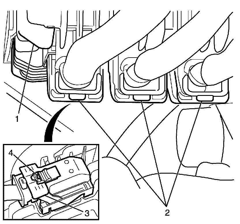 * Listen for an audible click to confirm correct installation of the ECM bracket retainers (2).
