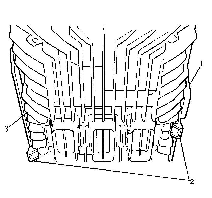 6. Apply suitable pressure to the ECM bracket retainers (2) and remove the ECM (3) from the ECM bracket (1).