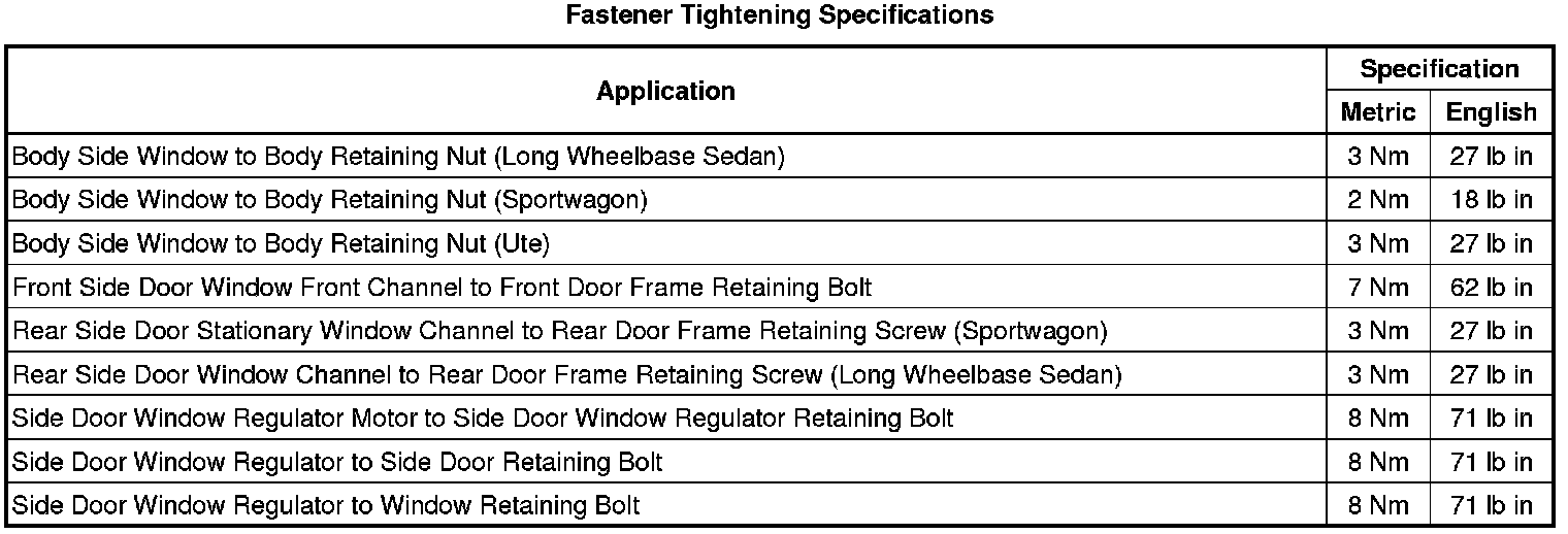 Fastener Tightening Specifications