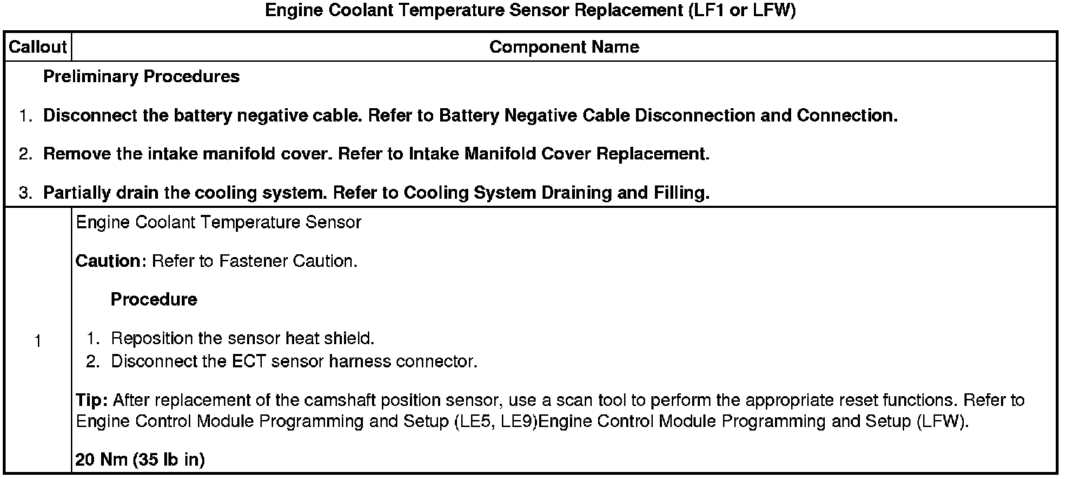 Engine Coolant Temperature Sensor Replacement (LF1 or LFW)