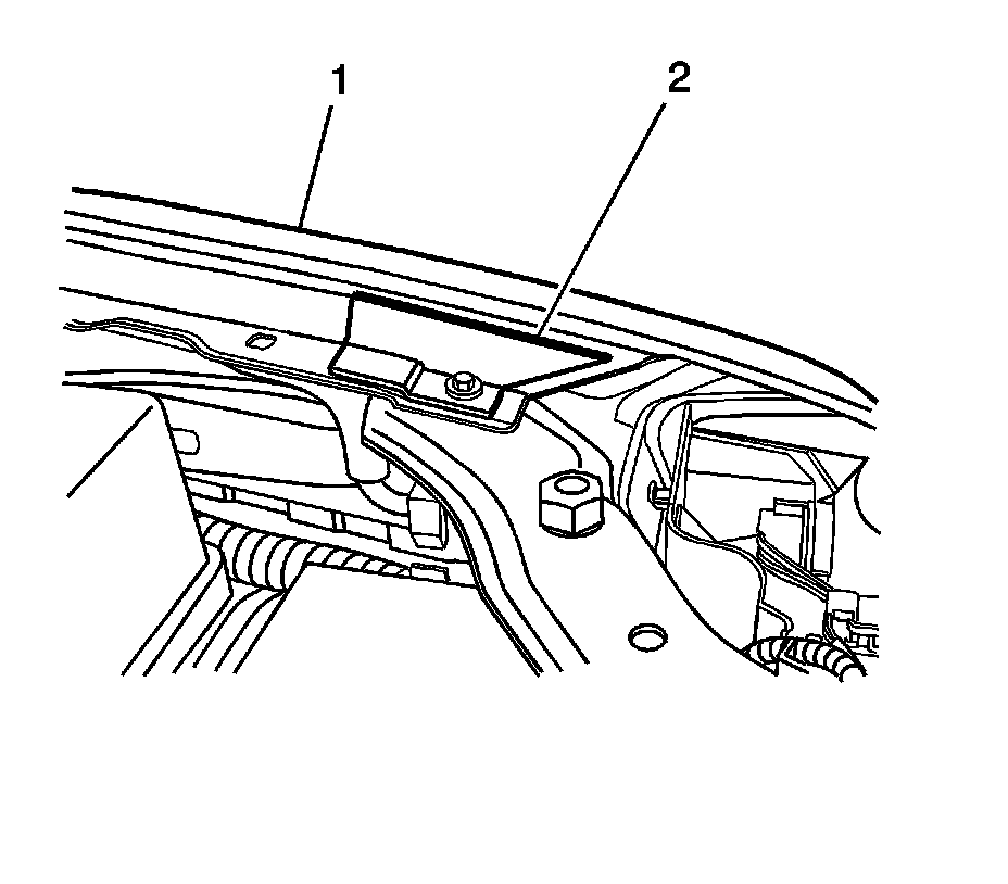2. Install the fender reinforcement (2) to the fender (1).