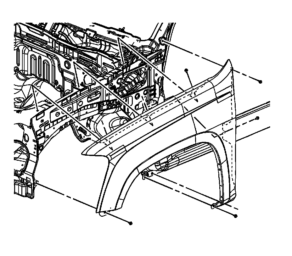 6. Remove the remaining bolts that retain the fender to the vehicle.