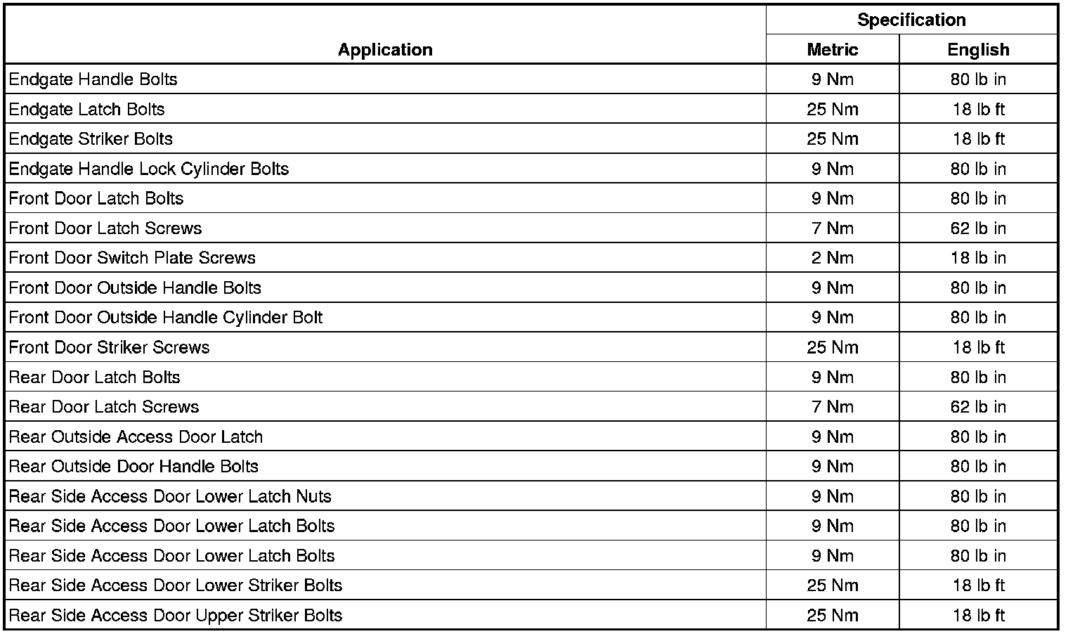 Fastener Tightening Specifications