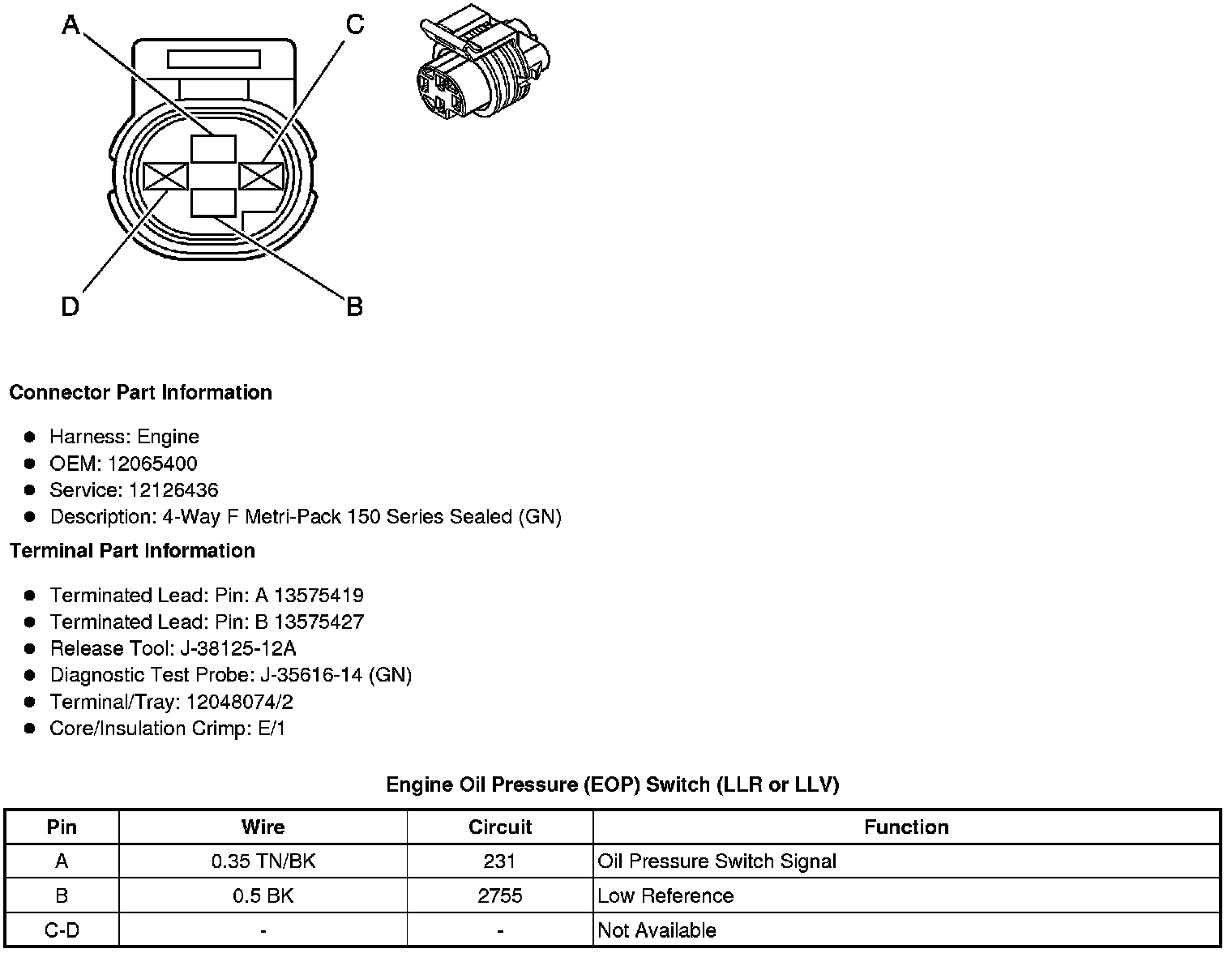 Engine Oil Pressure (EOP) Switch (LLR or LLV)
