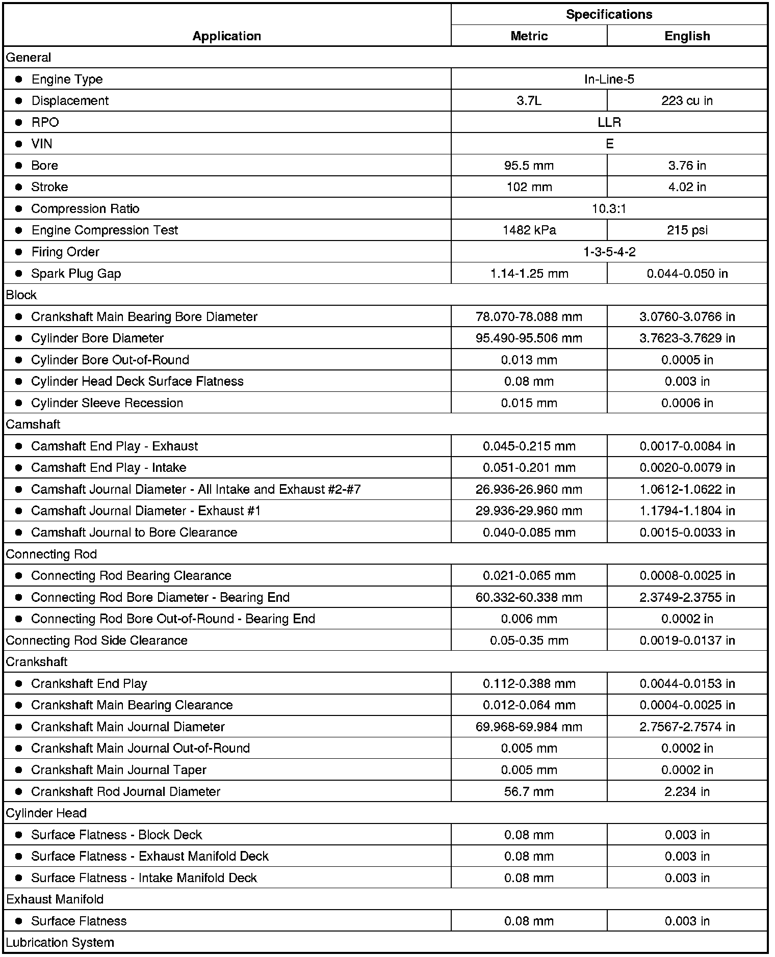Engine Mechanical Specifications