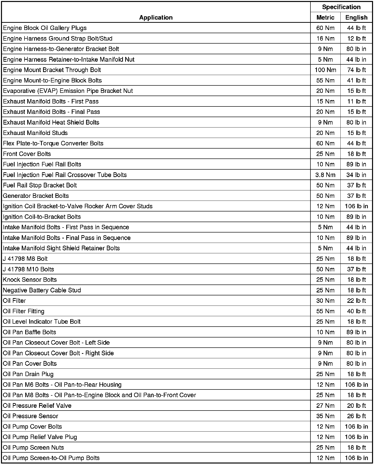 Fastener Tightening Specifications