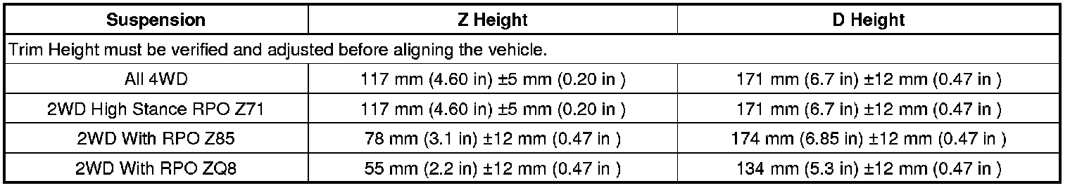 Trim Height Specifications