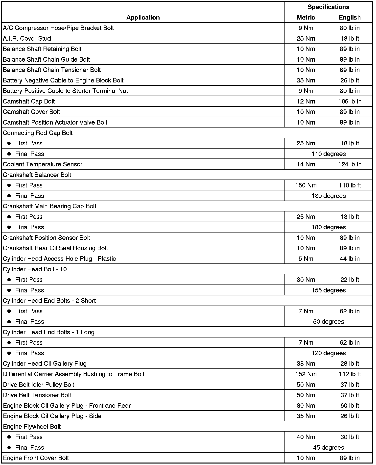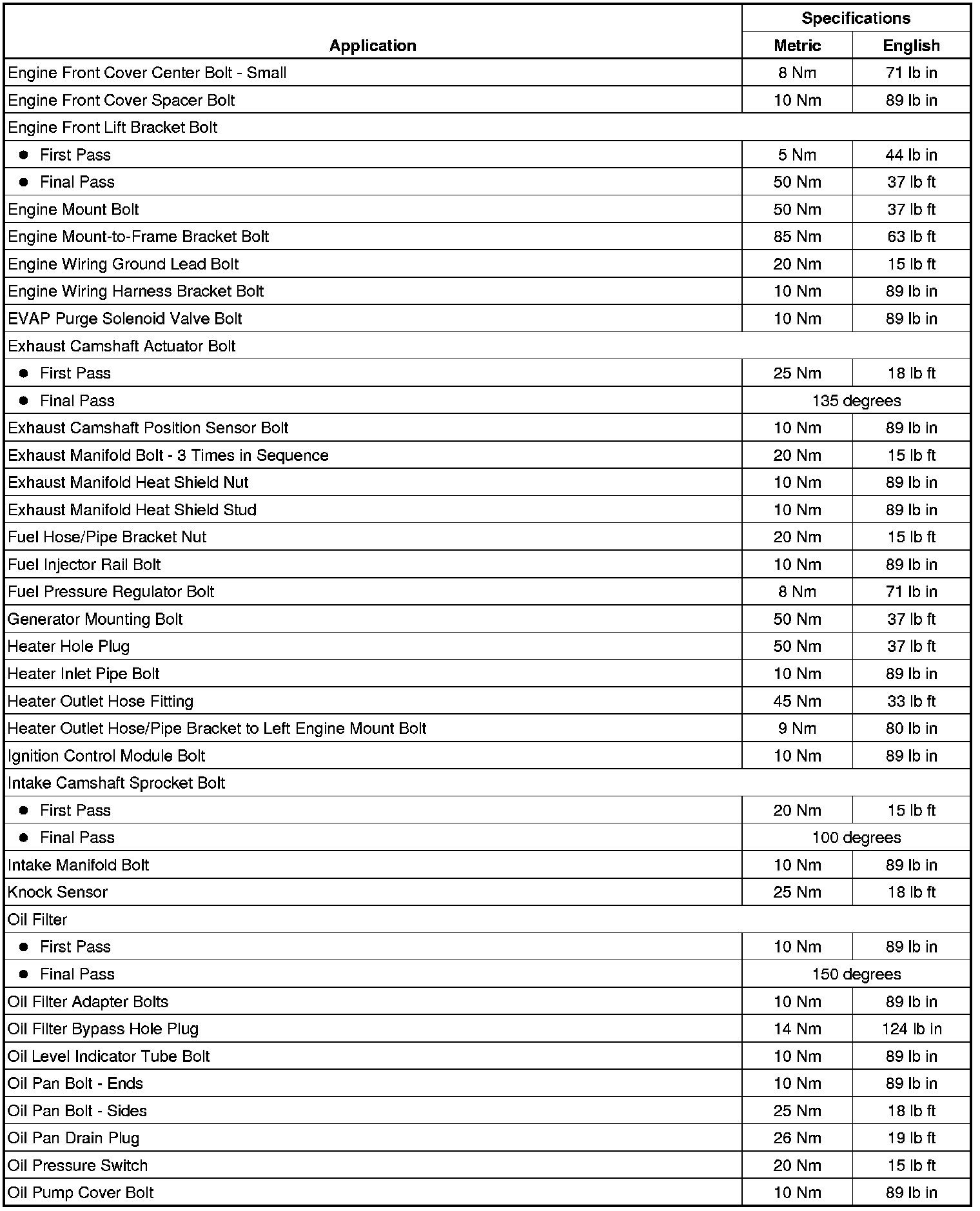 Fastener Tightening Specifications