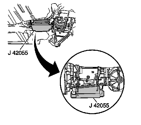 J 42055 drivetrain support fixture with the transmission jack to the transmission. Support the transmission.
