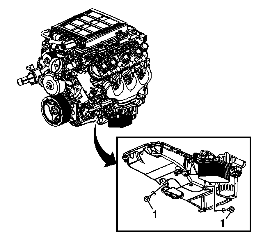 4. Remove both oil pan drain plugs (1).