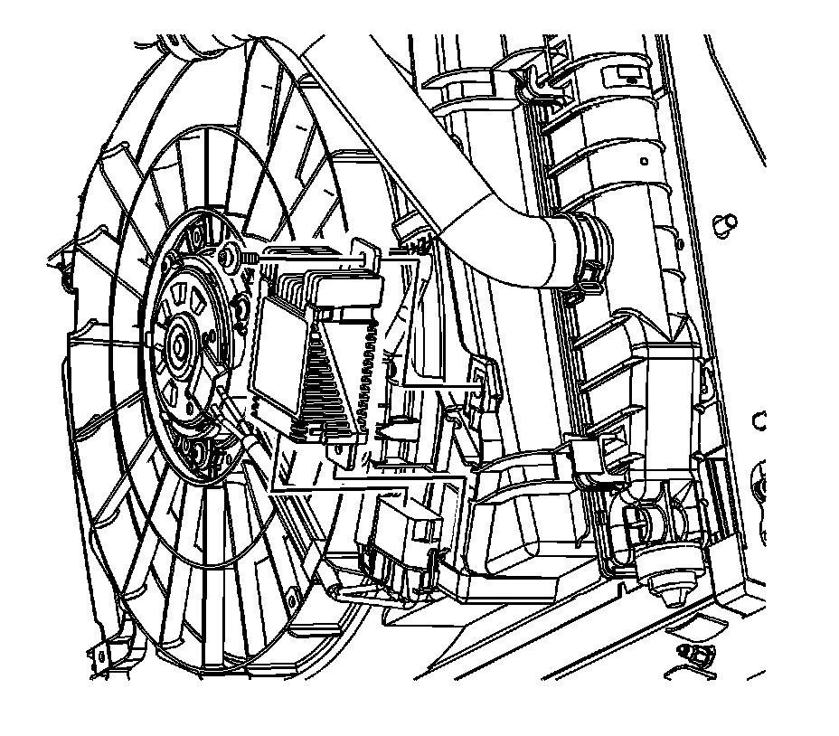 2. Install the cooling fan control module retaining bolt and tighten to 6 Nm (53 lb in).