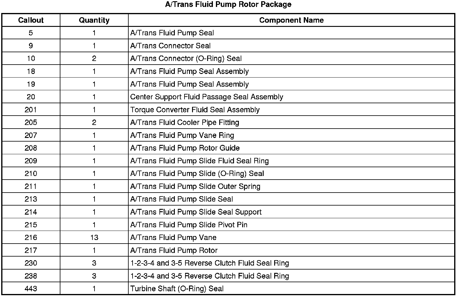 Home >> Chevrolet >> 2012 >> Corvette V8-6.2L SC >> Repair and Diagnosis >> Specifications >> Mechanical Specifications >> Automatic Transmission/Transaxle >> System Specifications >> Transmission Parts Kit Specifications
