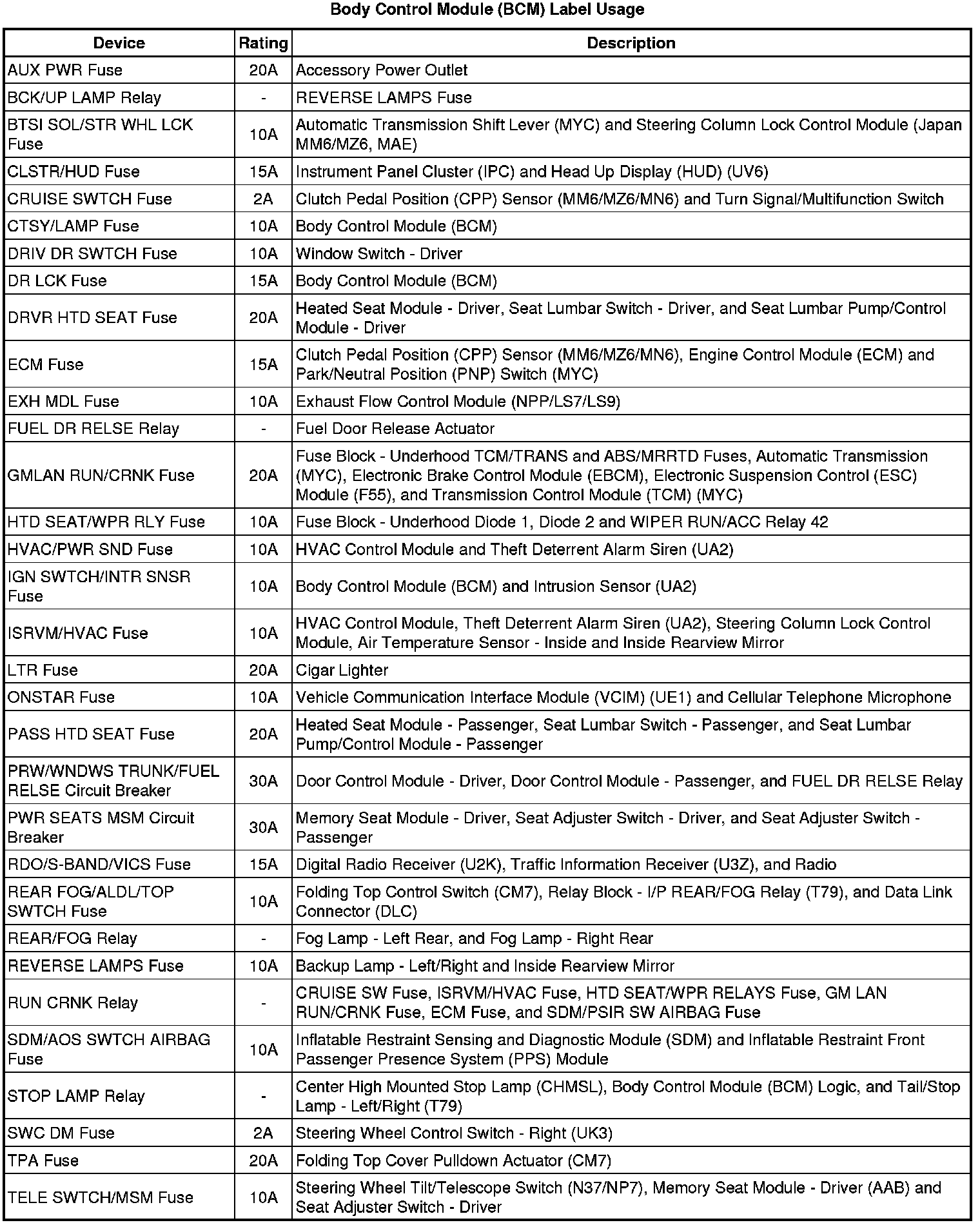Body Control Module (BCM) Label