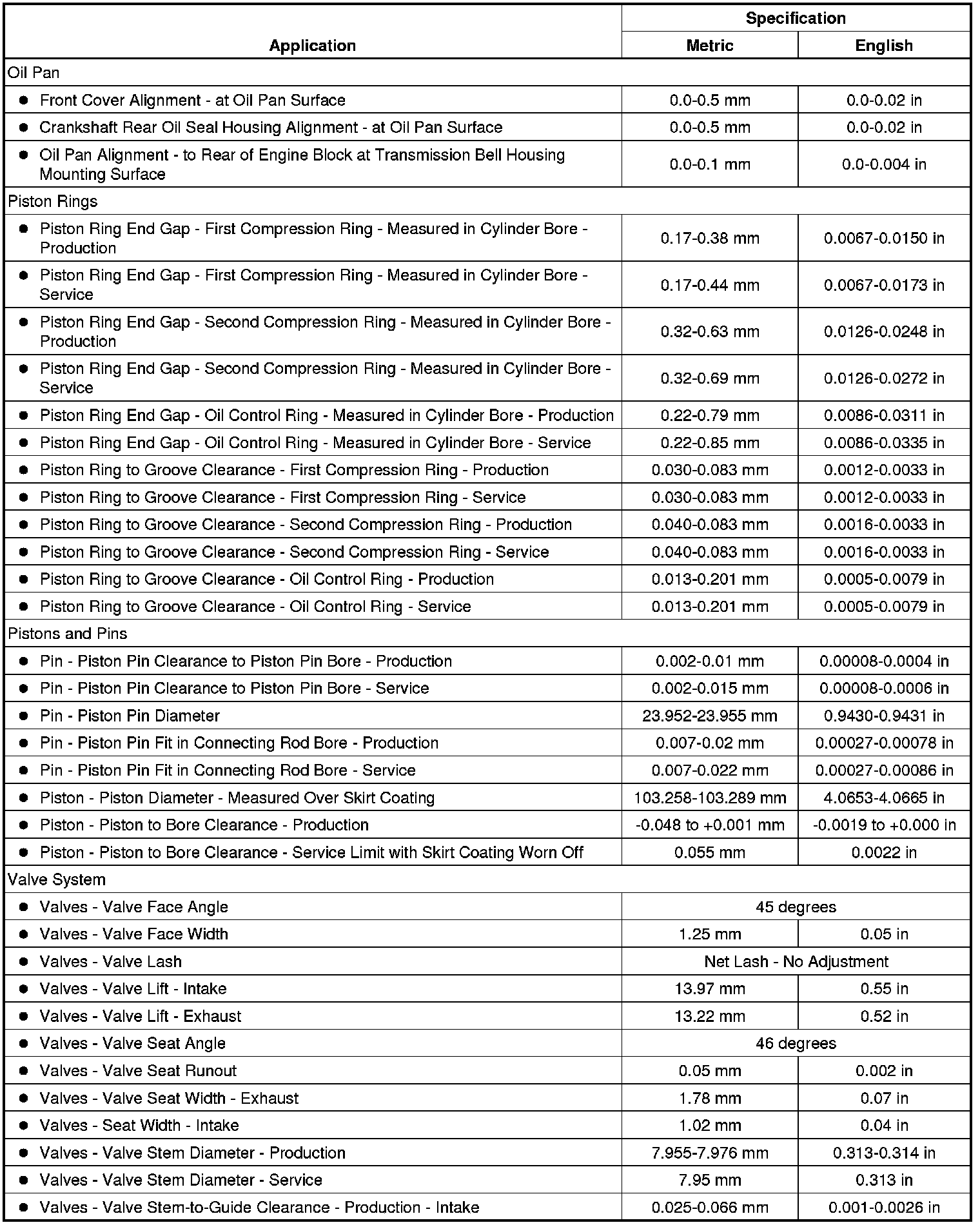 Engine Mechanical Specifications (6.2L LS3)