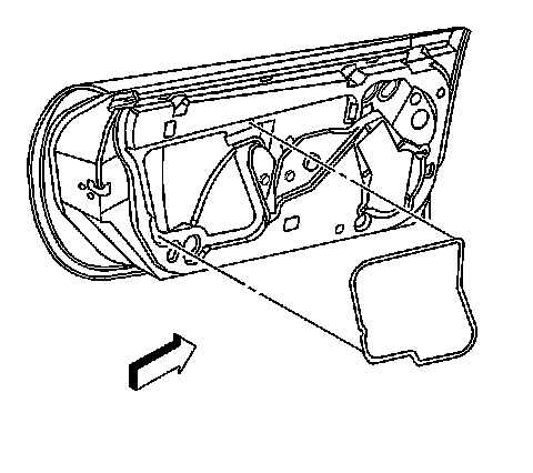 1. Remove the door trim panel. Refer to Front Side Door Trim Panel Replacement - Left Side Front Side Door Trim Panel Replacement - Left Side or Front Side Door Trim Panel Replacement - Right Side Front Side Door Trim Panel Replacement - Right Side.