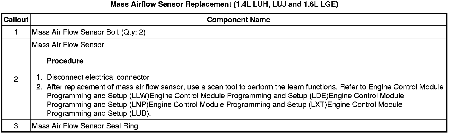 Mass Airflow Sensor Replacement (1.4L LUH and LUJ)