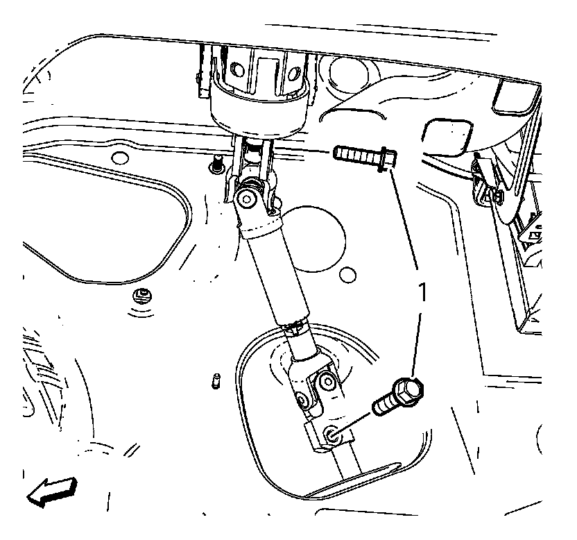 19.Install the NEW lower steering intermediate shaft (1) bolt and tighten to25 N �m (18 lb ft) plus 180 degrees.