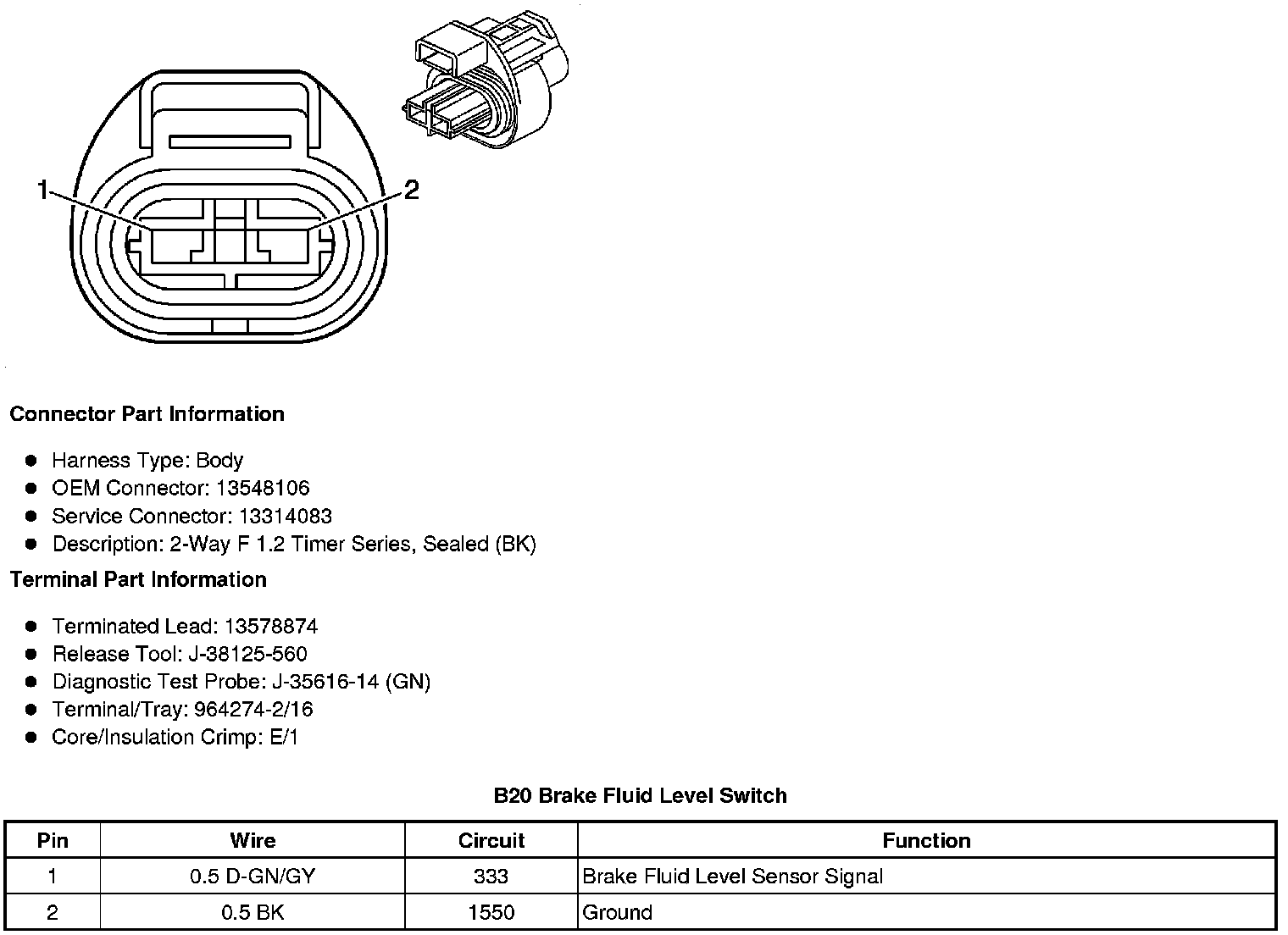 B20 Brake Fluid Level Switch