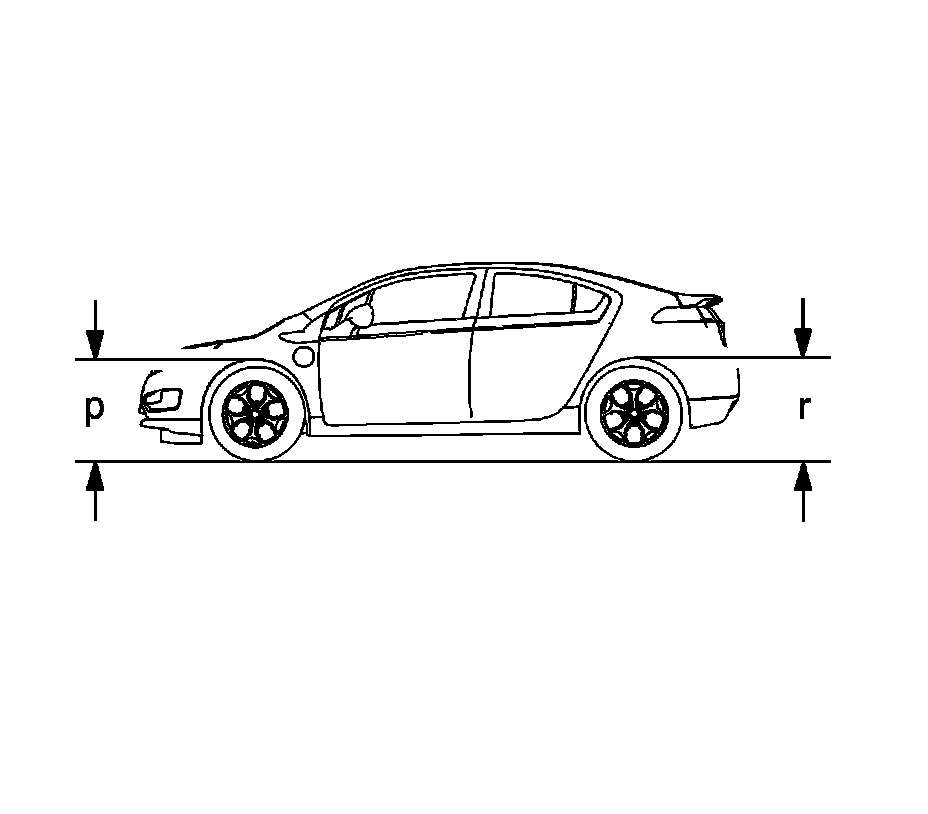 P Height: The vertical distance from the ground to the top of the wheel opening through the centerline of the front wheel.