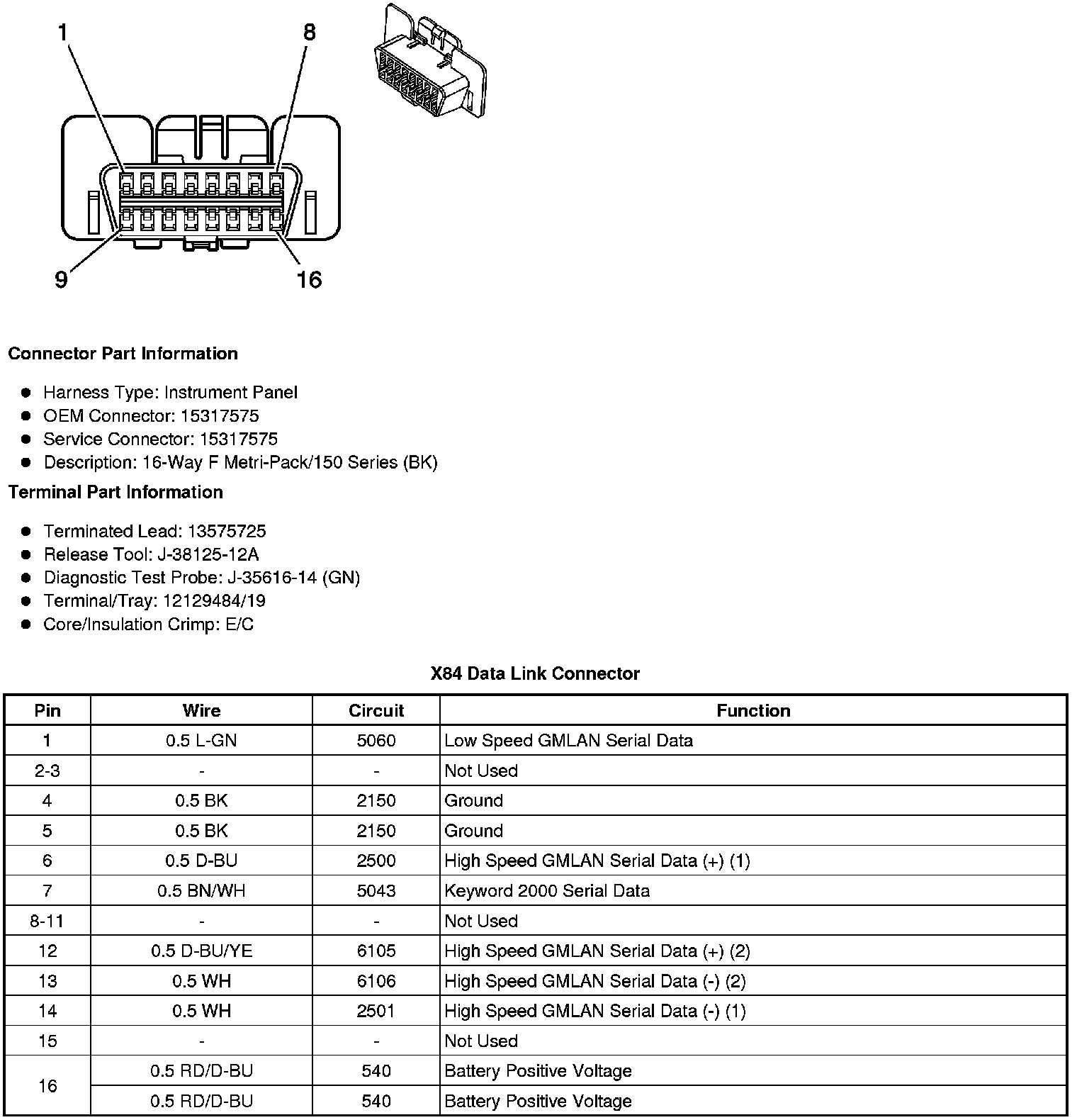 Data Link Connector: Diagrams