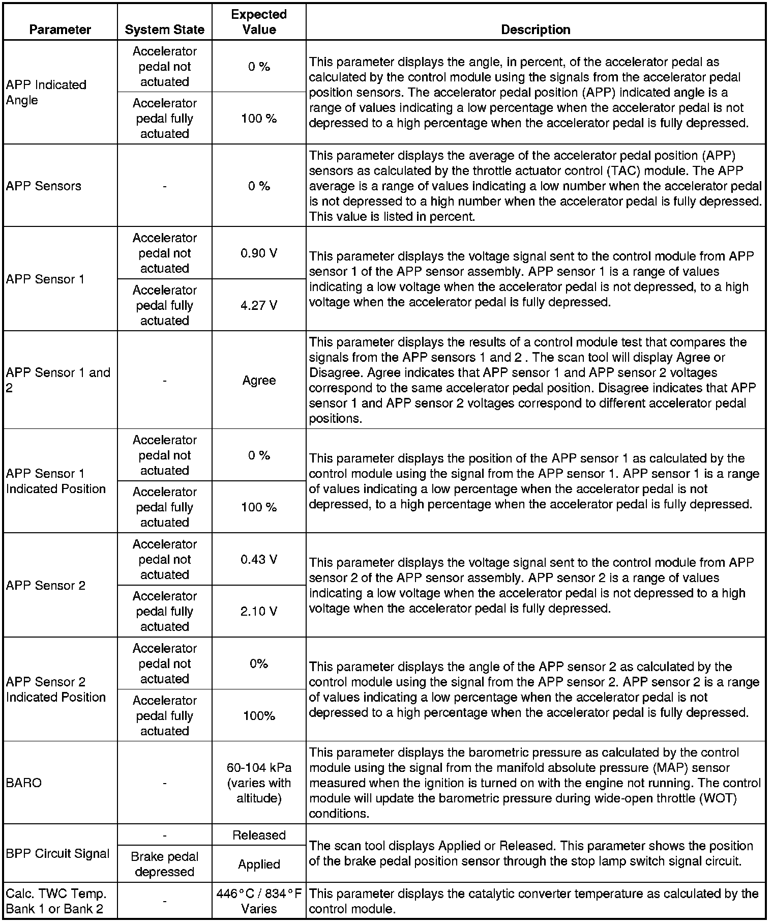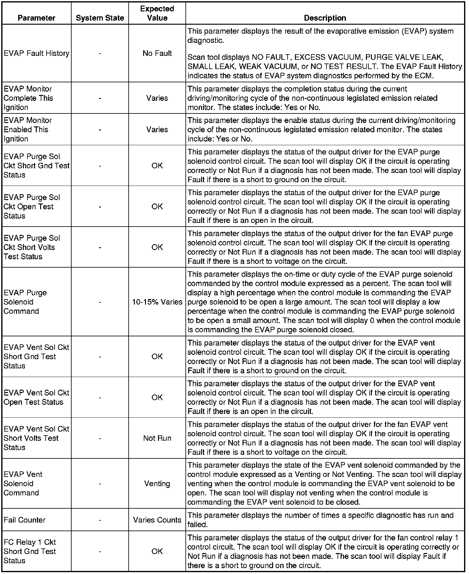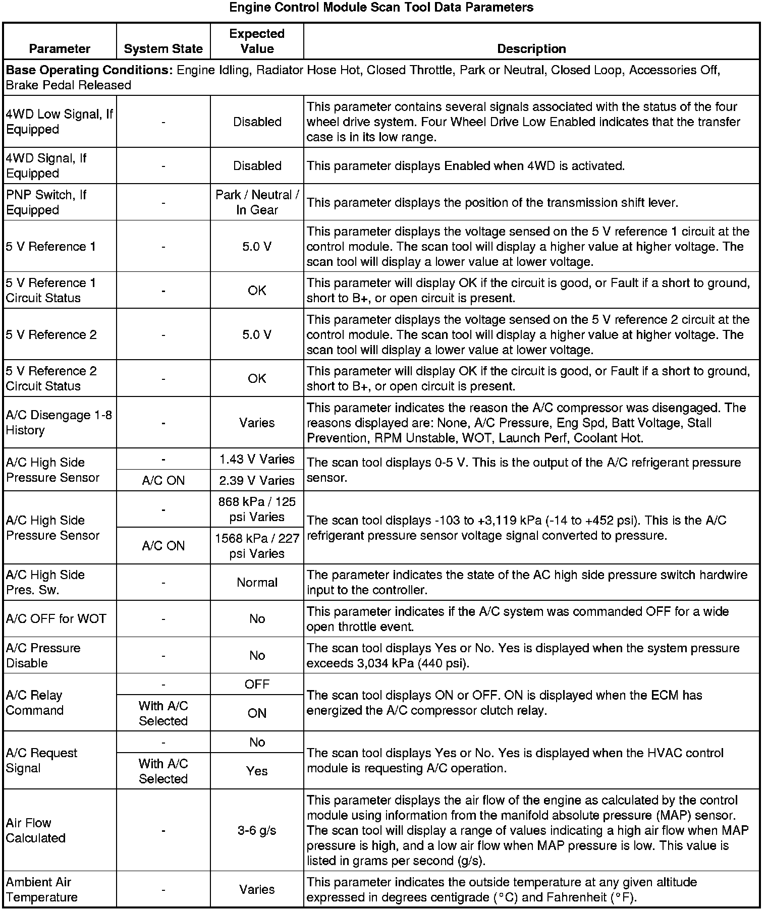 The Engine Scan Tool Data List represents values that would be seen on a normally running engine under the conditions listed below.