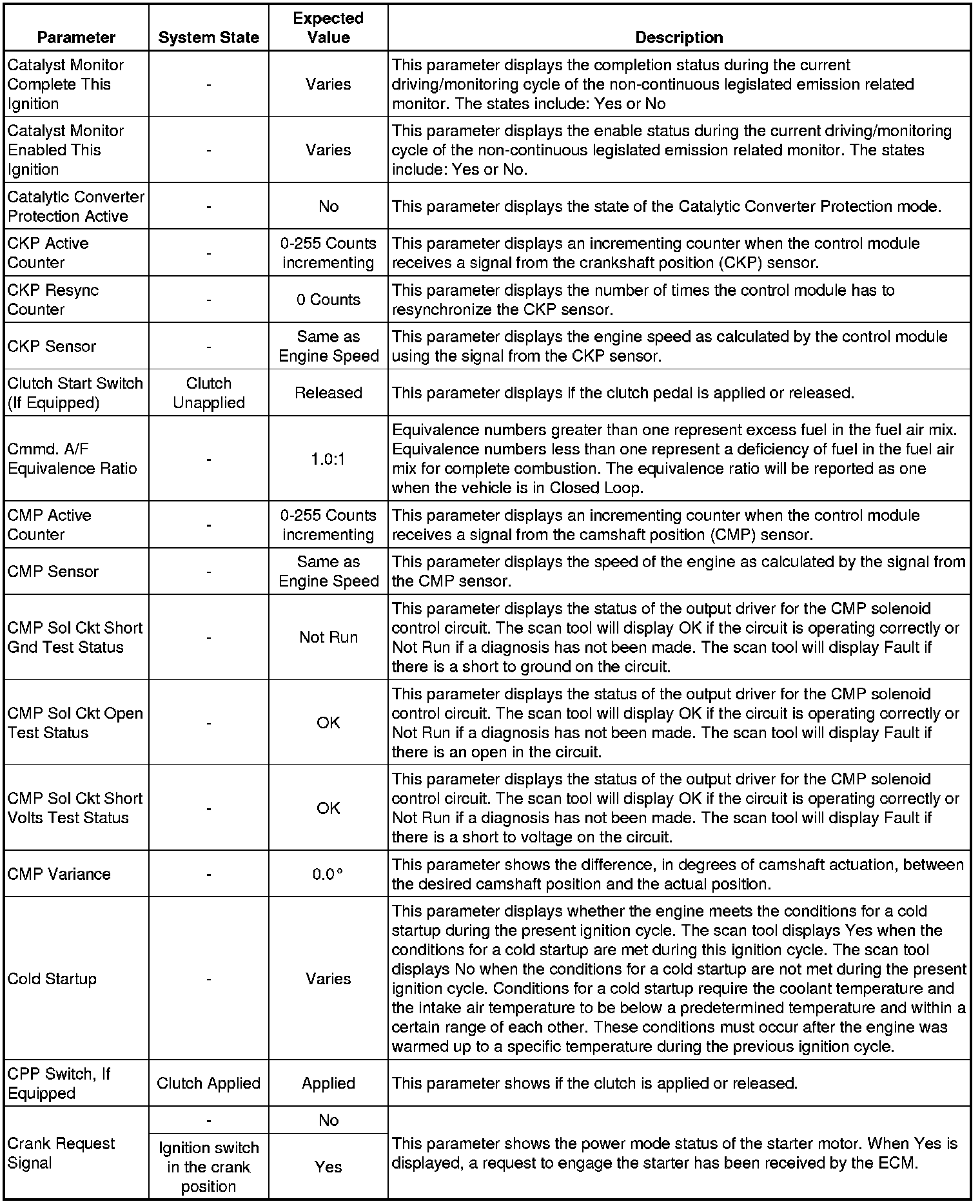 The Engine Control Module (ECM) Scan Tool Data List contains all ECM related parameters that are available on the scan tool. The list is arranged in alphabetical order. A given parameter may appear in any one of the data lists, and in some cases may appear more than once, or in more than one data list, in order to group certain related parameters together.