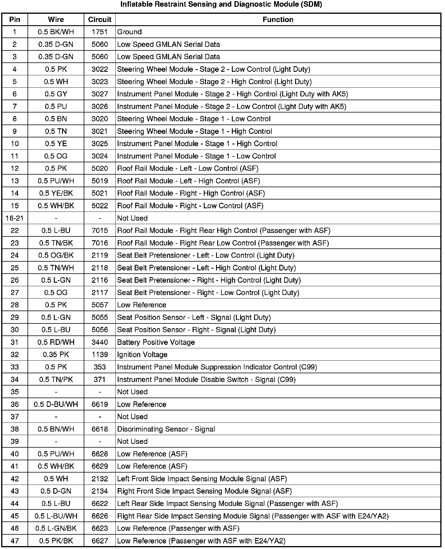 Inflatable Restraint Sensing and Diagnostic Module (SDM)