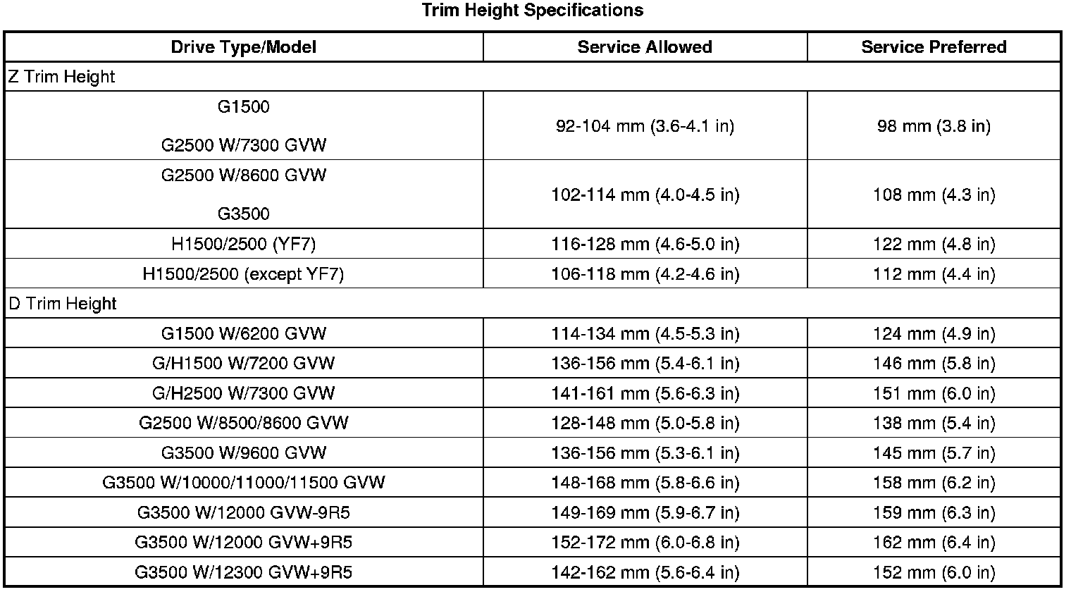 Trim Height Specifications