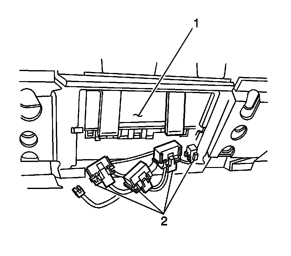 1. Remove the right side knee bolster trim panel. Refer to Passenger Knee Bolster Replacement Passenger Knee Bolster Replacement.