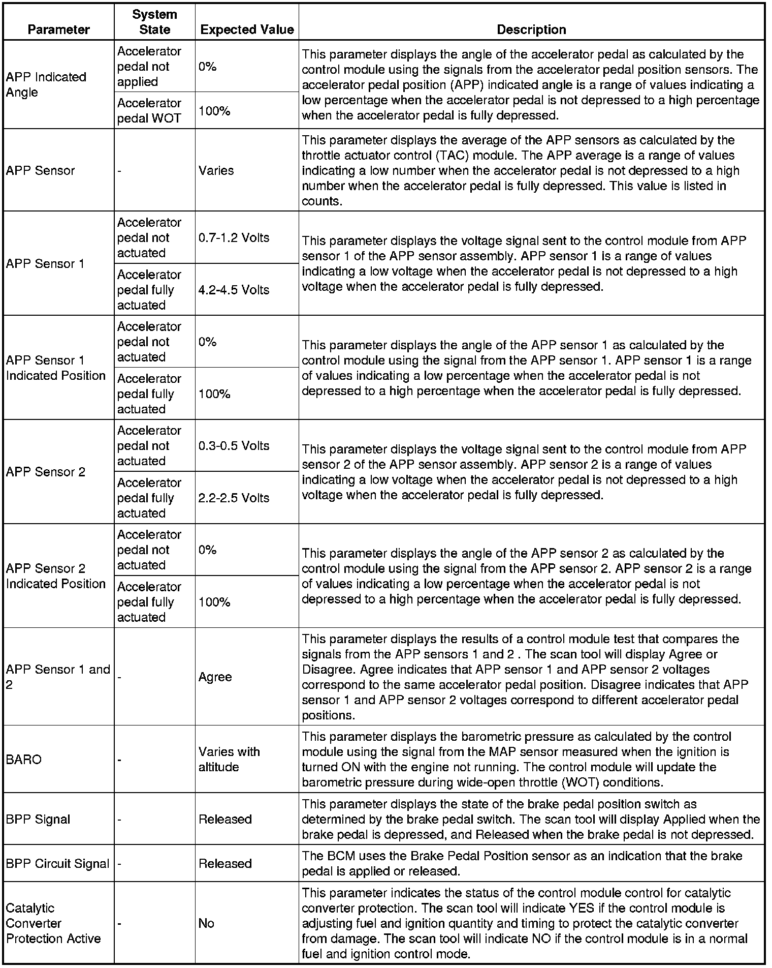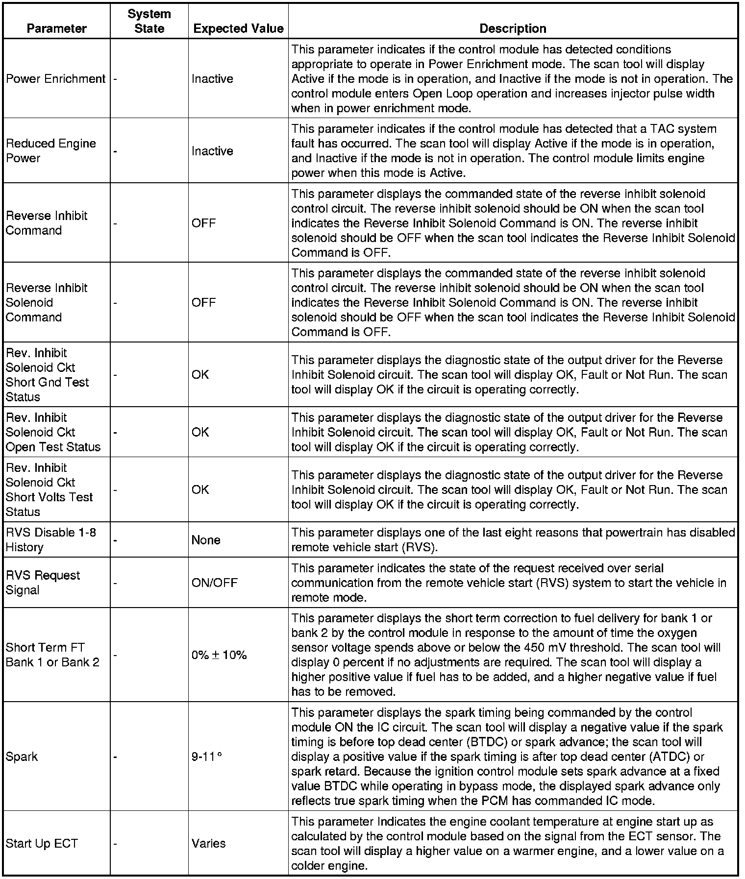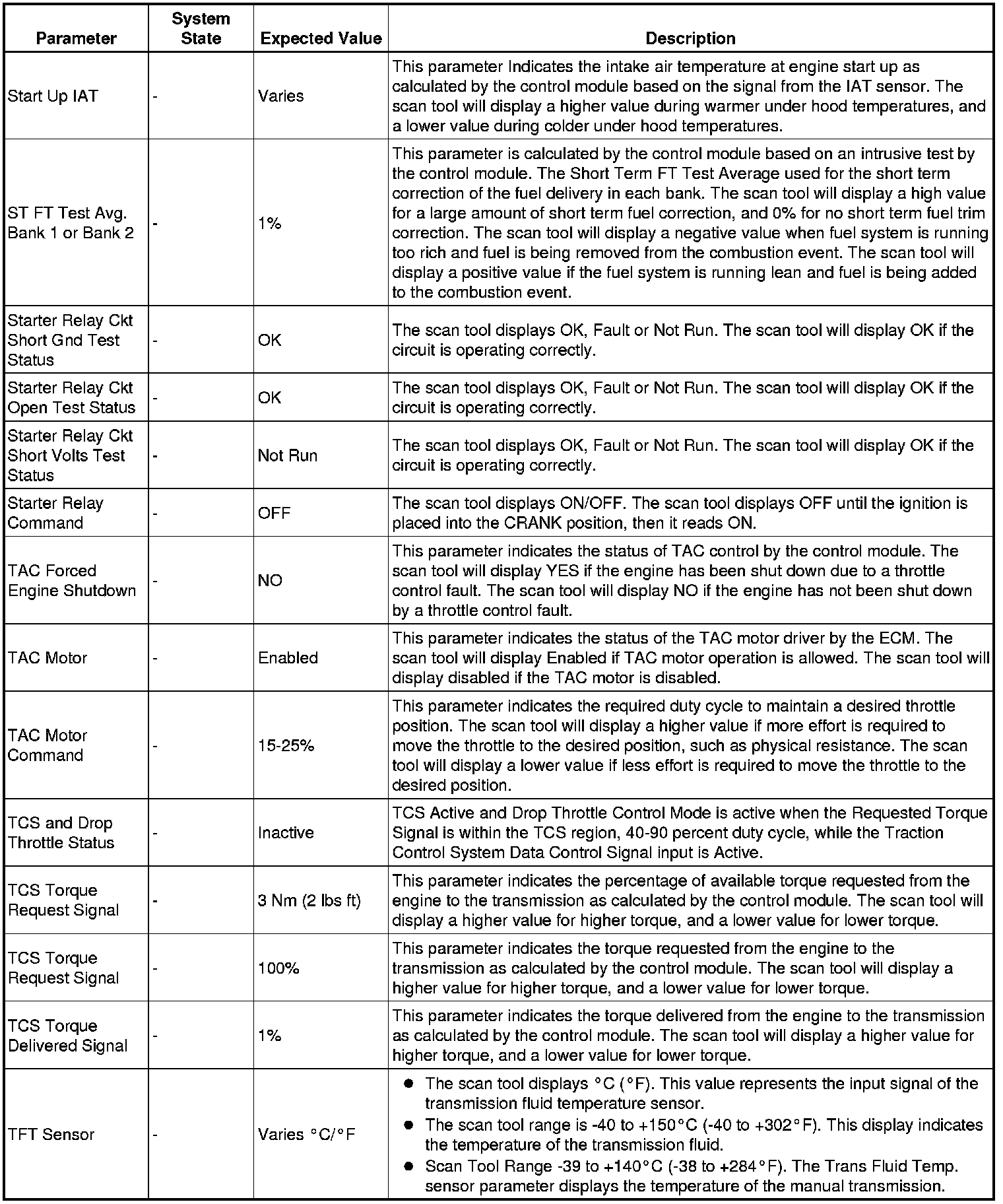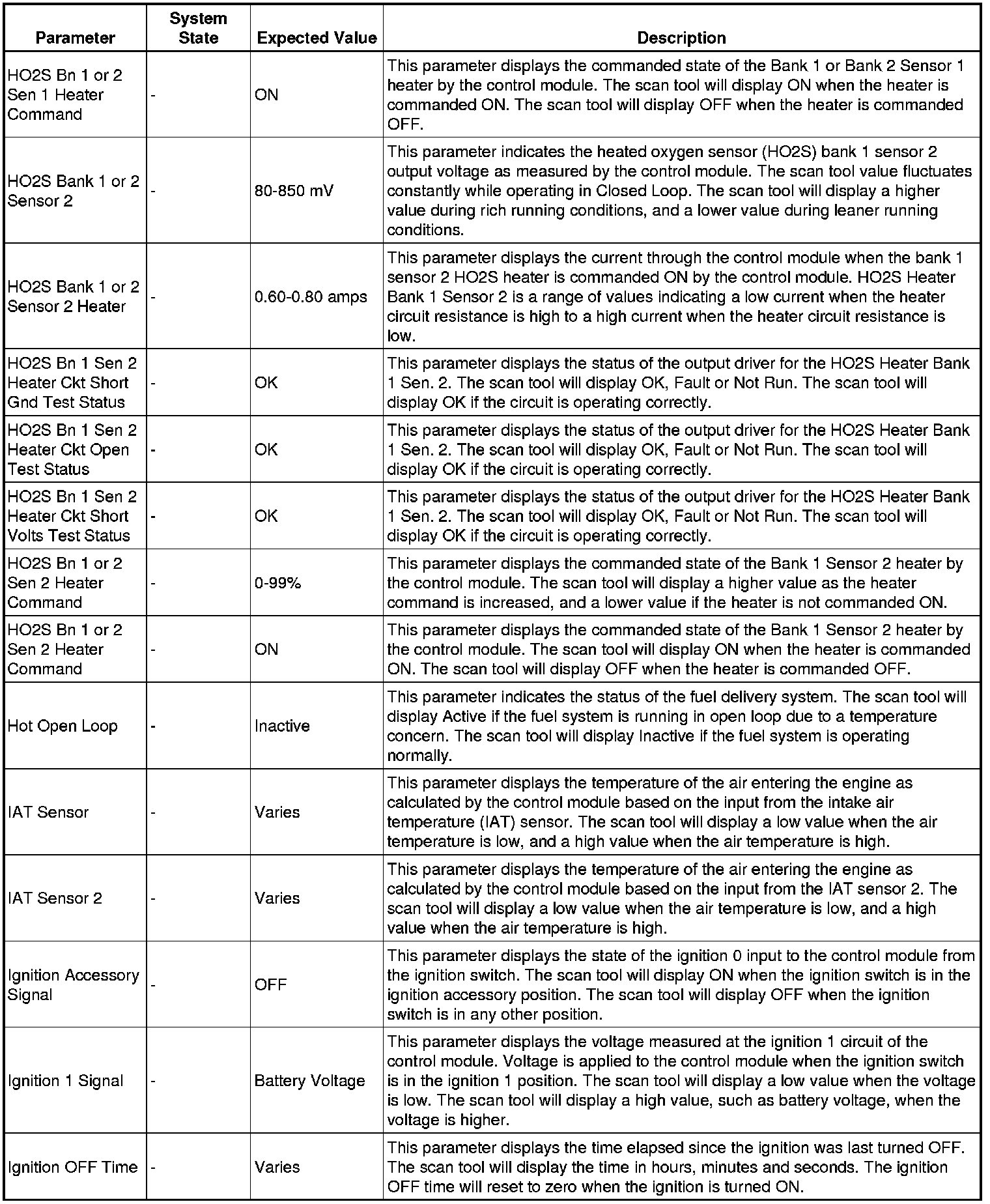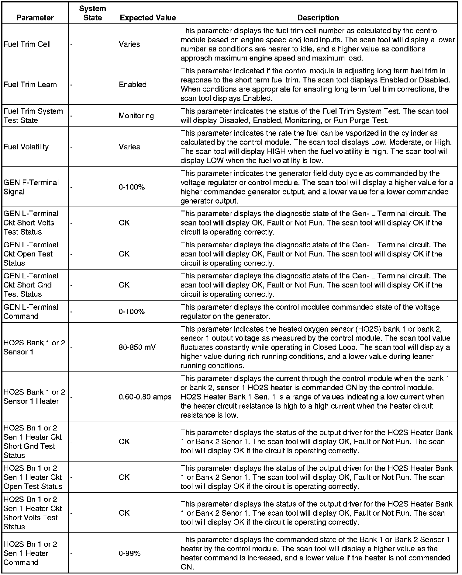 The Engine Control Module Scan Tool Data List contains all engine-related parameters that are available on the scan tool. The list is arranged in alphabetical order. A given parameter may appear in any one of the data lists, and in some cases may appear more than once, or in more than one data list in order to group certain related parameters together.