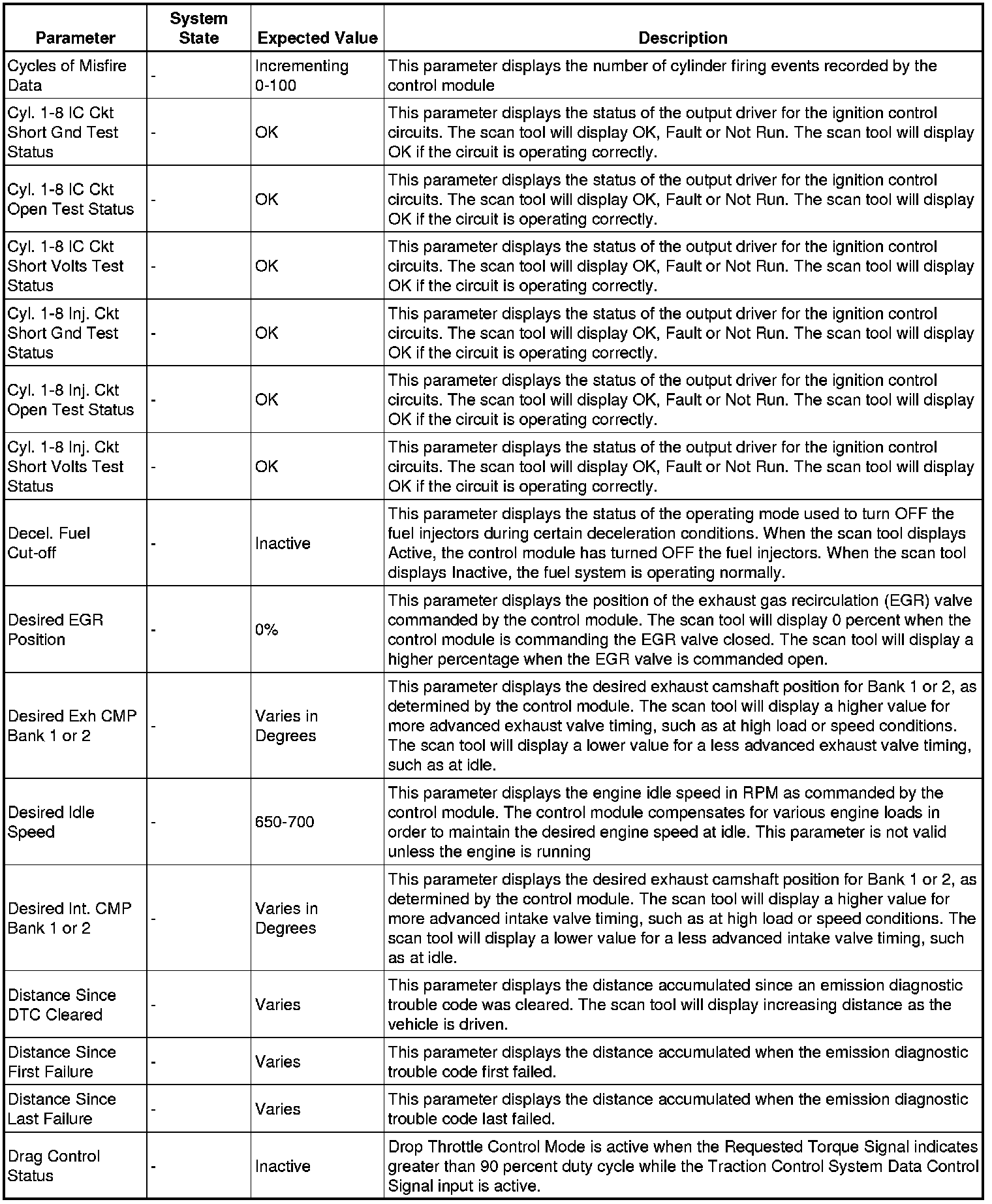 Engine Control Module Scan Tool Information (V8 Gasoline)